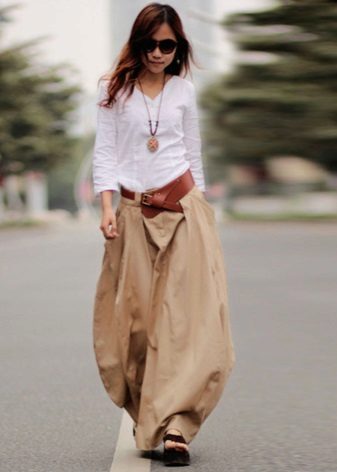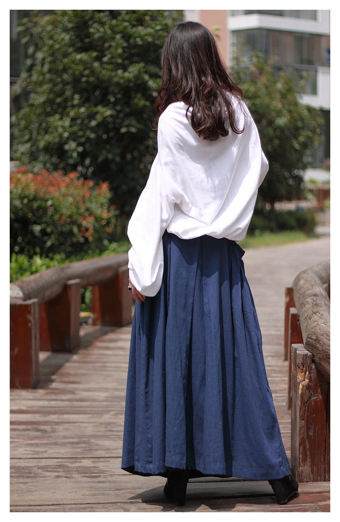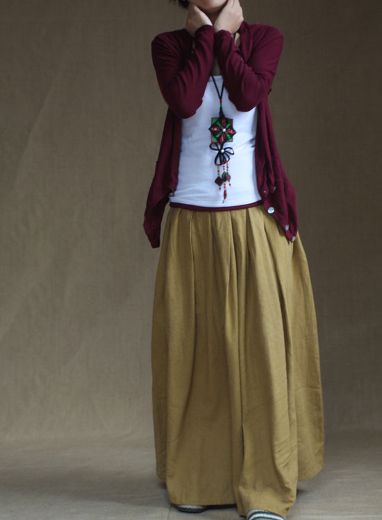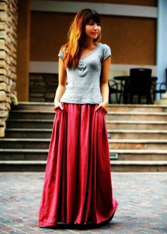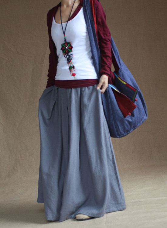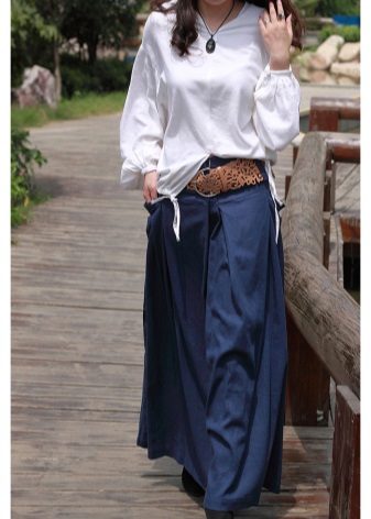 Such flaxen skirts have been trending for years now. They look very feminine and are often bought for a summer wardrobe. Modern maxi flax skirts are simple and quite complex cut.