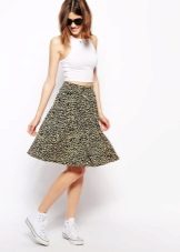 Leopard skirt can be made not only in the classic golden brown color. Interestingly look combinations of blue and blue, yellow and brown, white and brown.