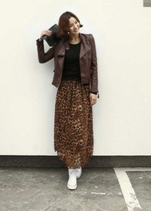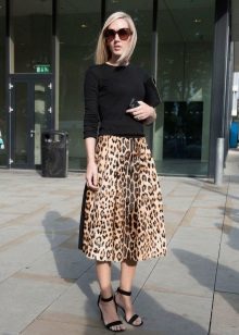 Leopard skirt can be used in different styles. For example, a midi or maxi skirt in combination with a white top or blouse is quite suitable for creating a strict look. Complete the image of the black jacket or jacket. Simple and stylish!