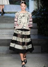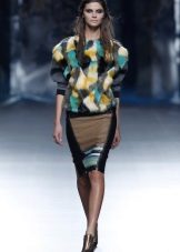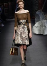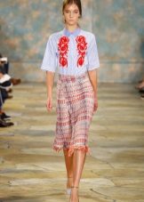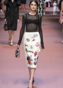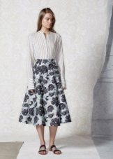 If you still selected fabric with a pattern, then the top to such a skirt is better to choose a calm, solid colors.