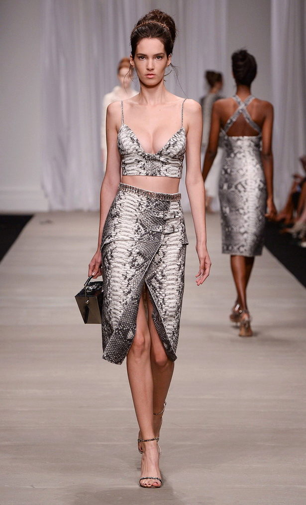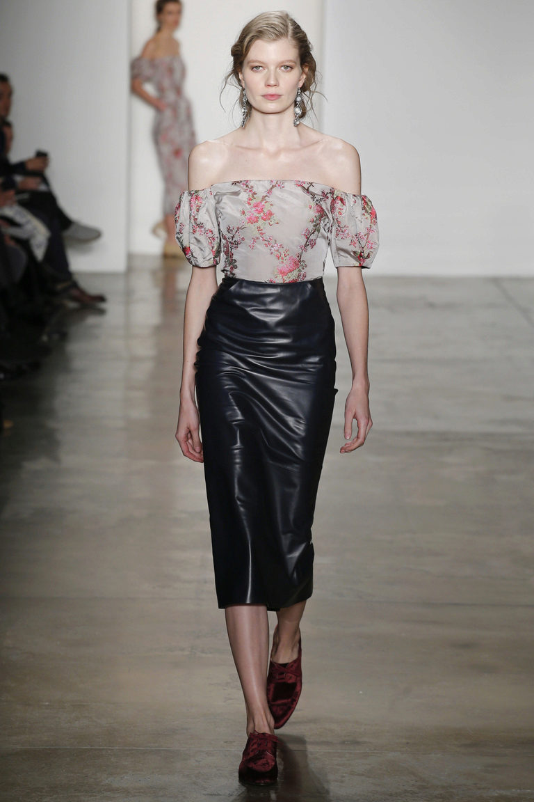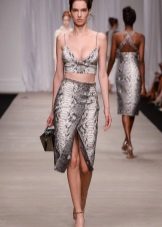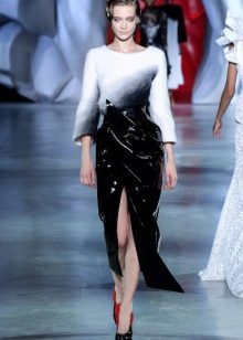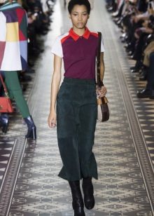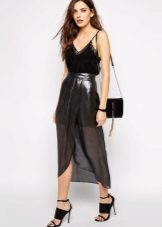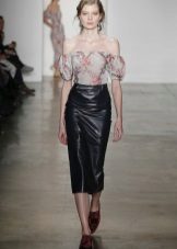 Suitable for brave, confident ladies. It goes well with a leather or denim jacket and jacket. The original version is a combination of a leather skirt with a top made of lace or translucent fabric, for example.