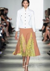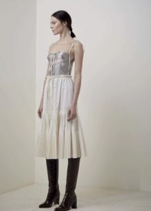 A medium-length skirt does not imply any specific rules in the choice of fabric. Each material on the model of this length looks different, and it is quite the place to be.