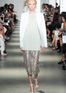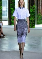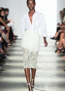 - A medium-length skirt is quite capable of using shirts or long blazers. True, this option looks interesting on tall girls, it will make a miniature even shorter.