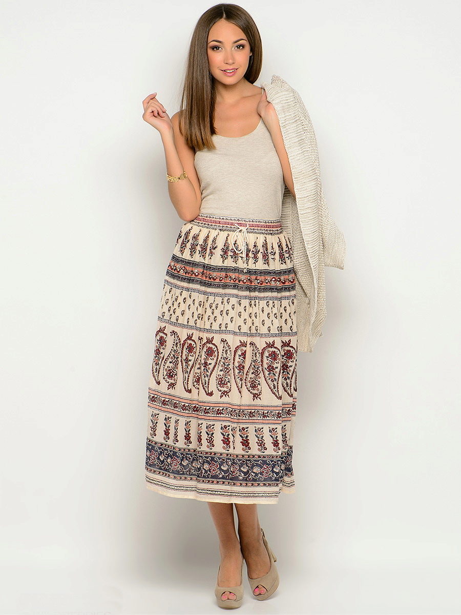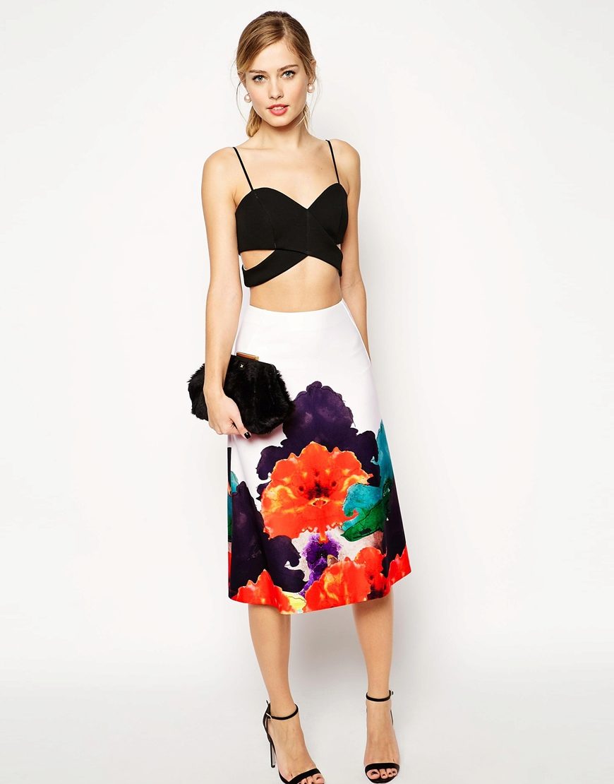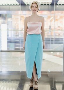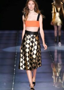- Skirts with bright prints require the most relaxed top and vice versa - one-piece models can be complemented with colorful tops, T-shirts or T-shirts.