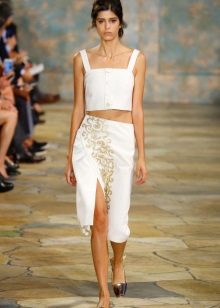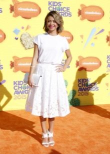 It is perfectly combined with other colors, is a basic element of any ensemble of clothes. The generally accepted opinion that the white color adds extra weight is partly true, therefore, ladies with magnificent forms should pick up white midi skirts with special care.