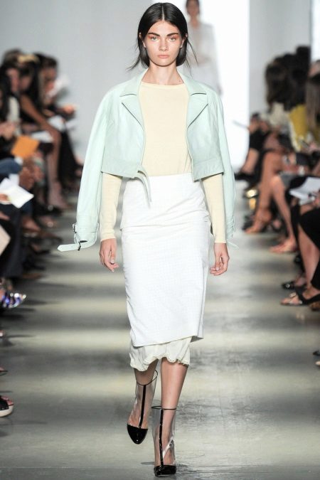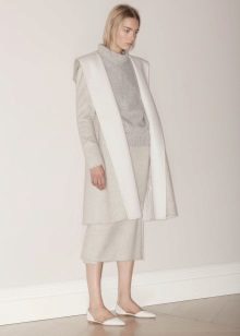 Lovers of the classics should try on an unexpected image: a snow-white midi skirt with a tight-fitting or loose top in bright colors and a denim vest or jacket. Very cute and modern!
