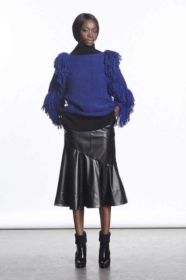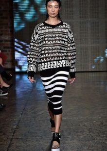 Another interesting option is a black leather skirt and a voluminous knitted sweater.