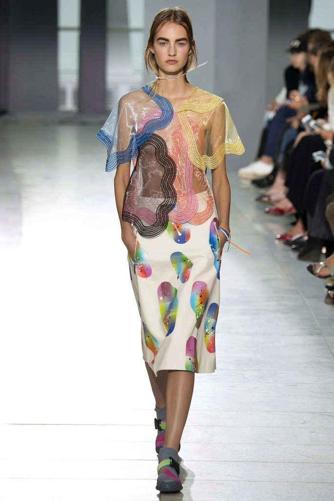 A great option for a hot summer - skirt + shirt or top bright, acid colors. Colors should be contrasted, such as light green and poison pink.