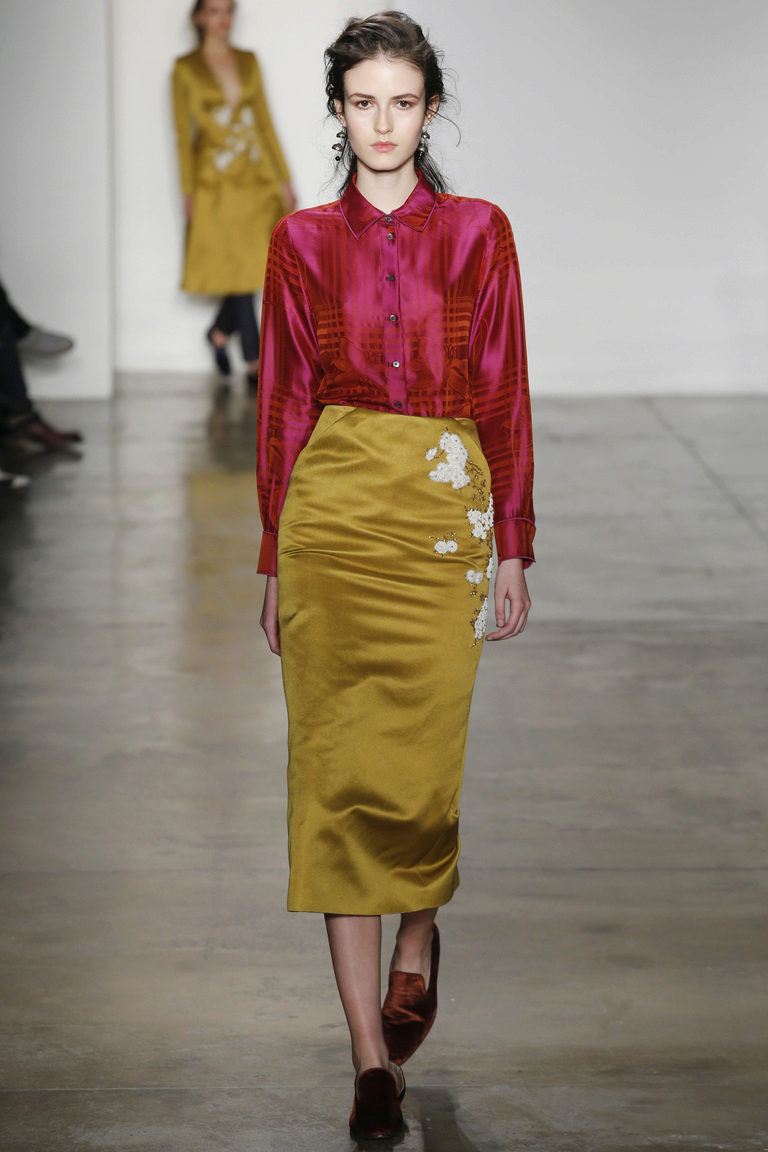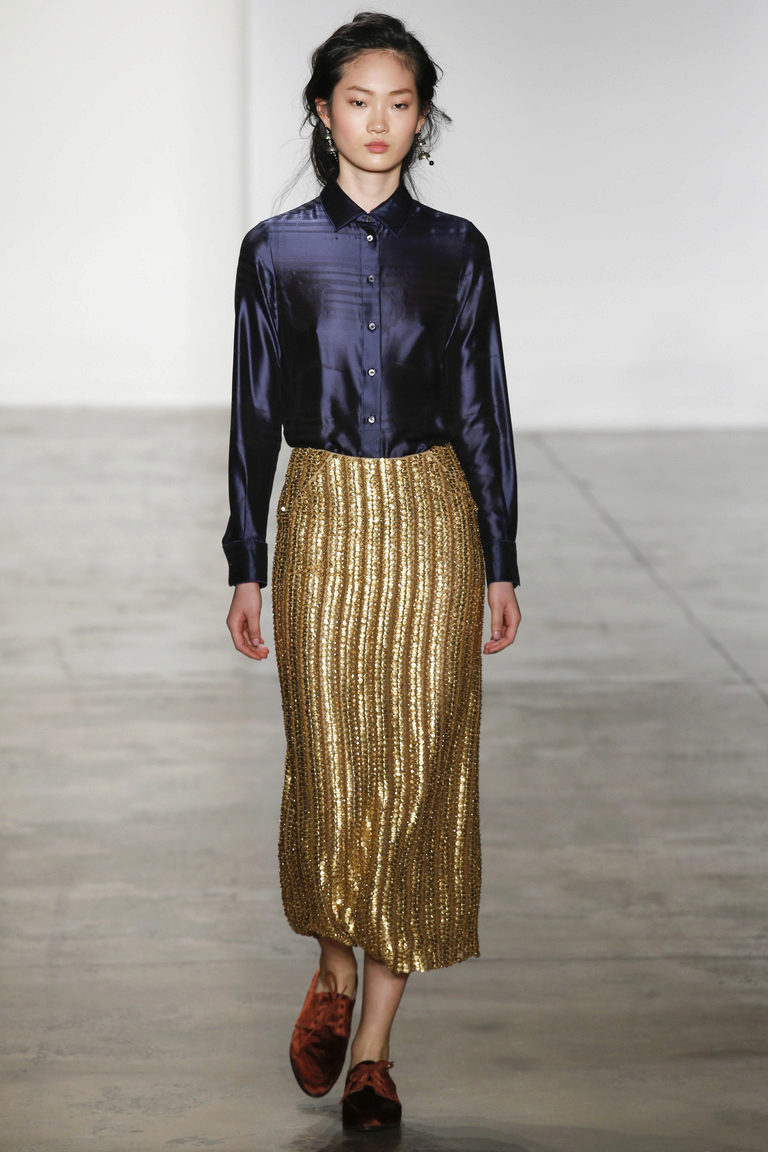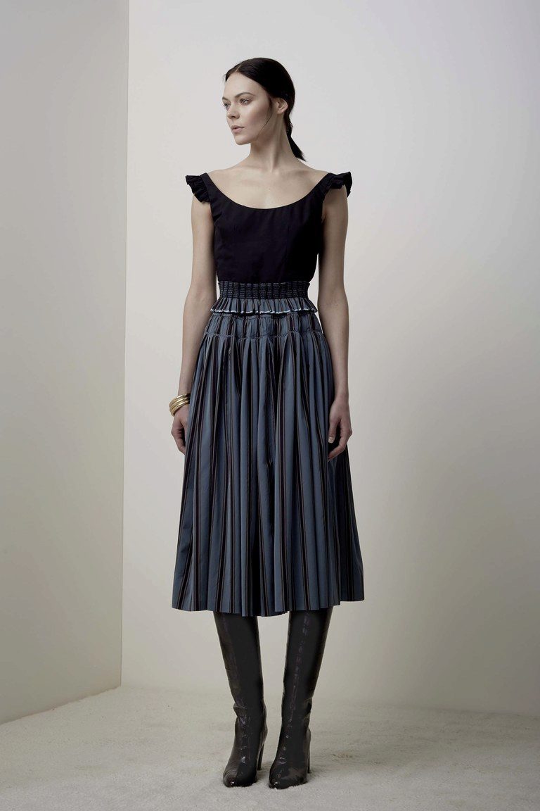 - The thicker the skirt, the smoother and more restrained the top should be. This is a general rule, but there are exceptions to it.