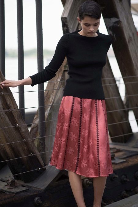 The so-called “liquid” knitwear is not the best idea for sewing midi skirts. It emphasizes even the smallest flaws in the figure, so it is not recommended to use it.