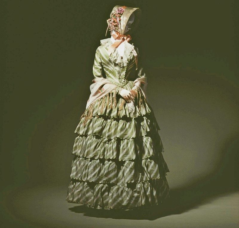 The first multi-layered skirts stuffed horsehair, but because of the severity of them was difficult to move around. Then, to make it more splendid, they began to use a larger number of layers, which sometimes reached 10. The topmost layer was made of lace or silk, decorated with embroidery.