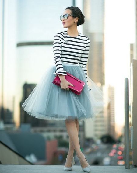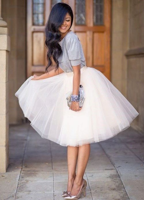 In our time, there is a huge variety of models made from different materials. Tulle skirts are very popular. The texture of the fabric is able to give an image of lightness and airiness, and pastel colors will give the model a tenderness and grace.