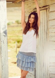 Looks great Sun skirt, half sun, trapezoid or any other wide model on the yoke, additionally decorated with frills or ruffles. This skirt helps to create an incredibly gentle, romantic image. The edge of the skirt can be raw or on the contrary - additionally decorated with braid, ribbon, lace.