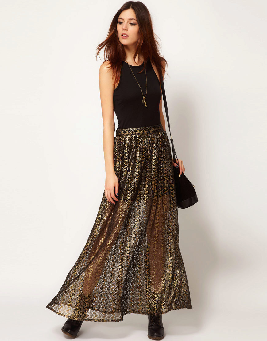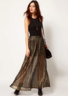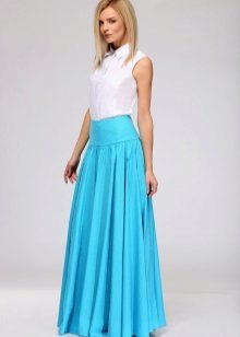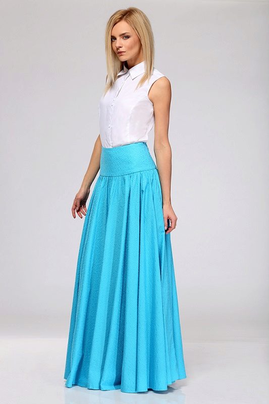 A great option for a solemn occasion - a long skirt. In this case, the yoke can be quite wide. The skirt looks very nice with a yoke made of contrasting shiny fabric, leather, satin, silk, etc. in color.