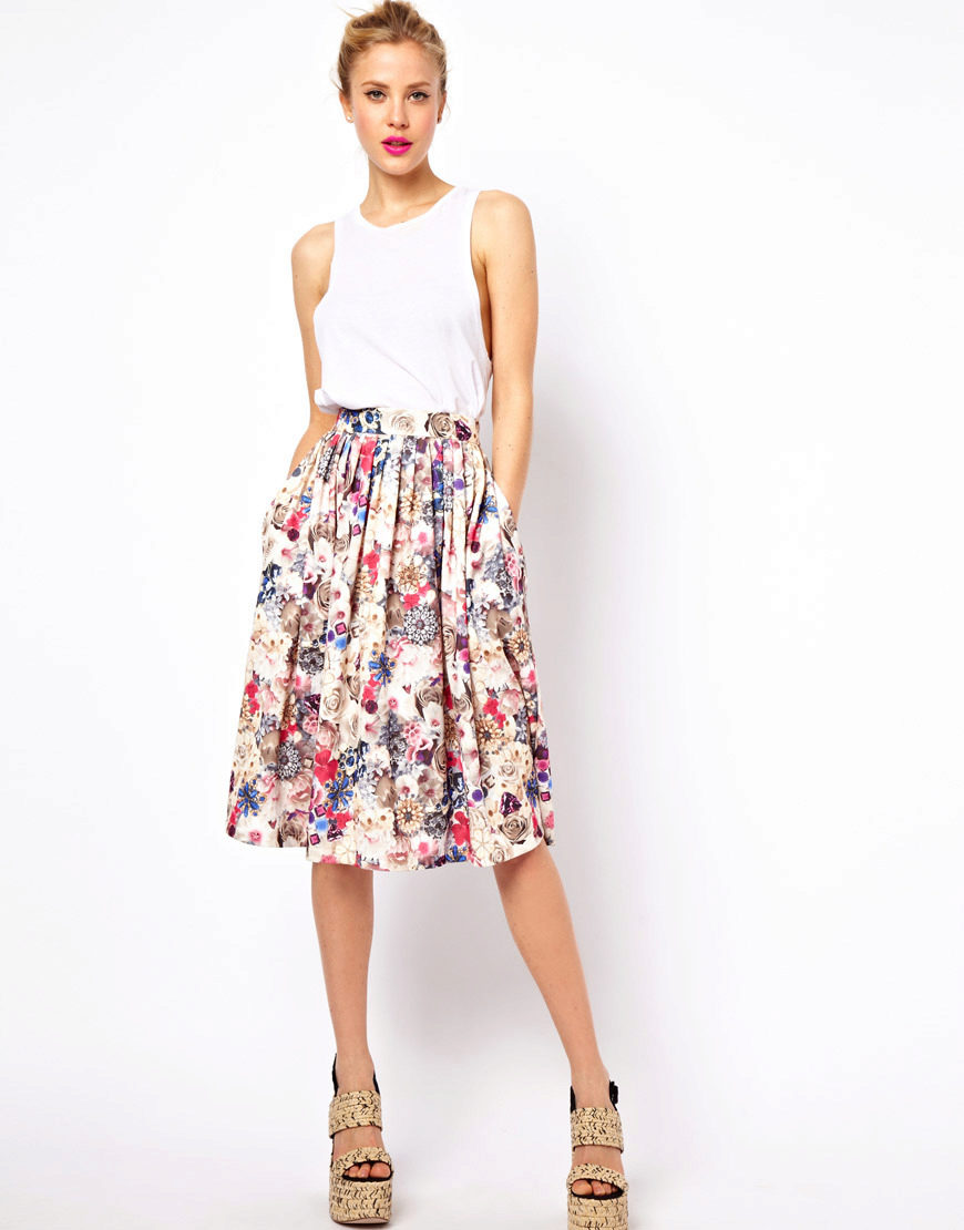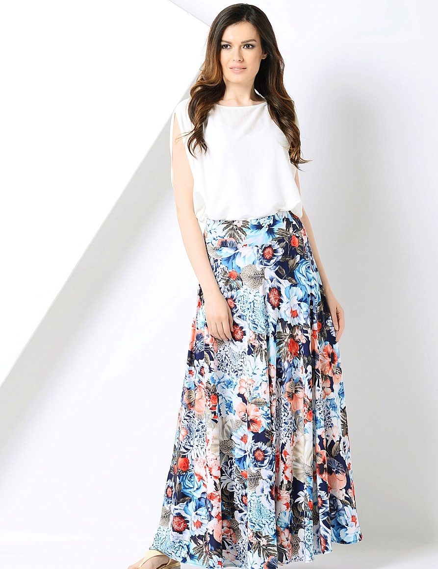 At the peak of fashion - light, airy skirts on a yoke of thin fabrics. Models with bright, unusual prints. Under such a skirt you can wear a soft top, one-colored T-shirt, pastel-colored turtleneck, t-shirt, etc.