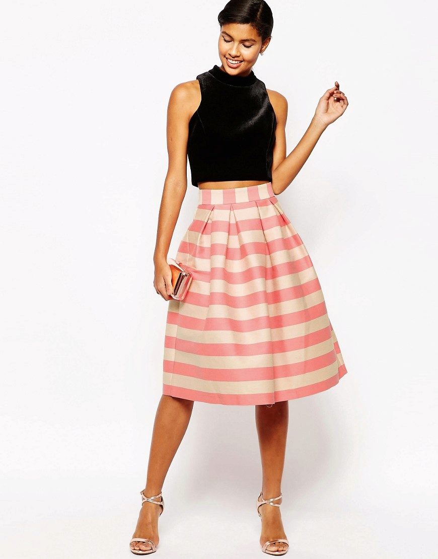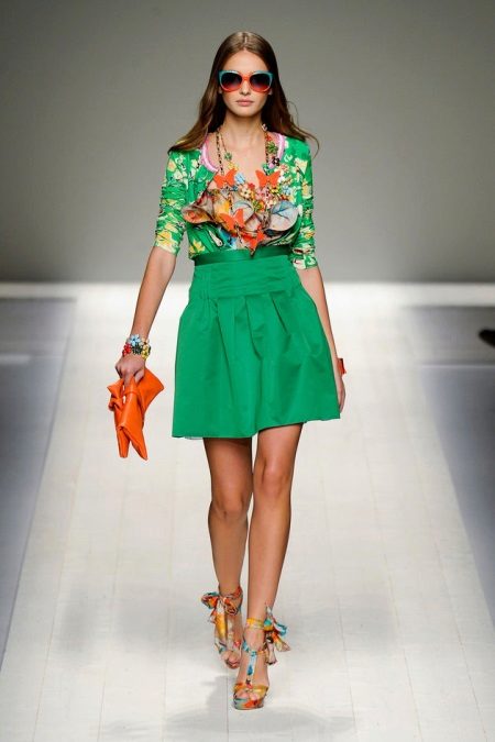 If the skirt is made of monophonic fabric, then the top may be brighter and more contrasting in color. The thicker the skirt, the smoother and simpler the top should be.