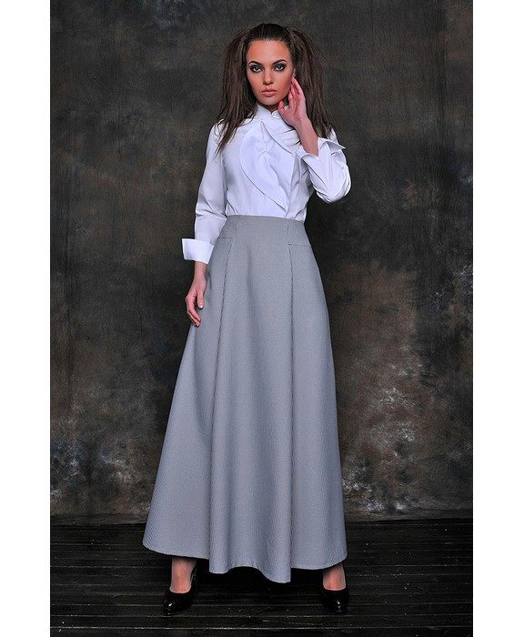 A semicircular skirt on a yoke creates a very romantic, gentle image. It is perfectly combined with blouses of all kinds of cut, light tops, turtlenecks, etc.