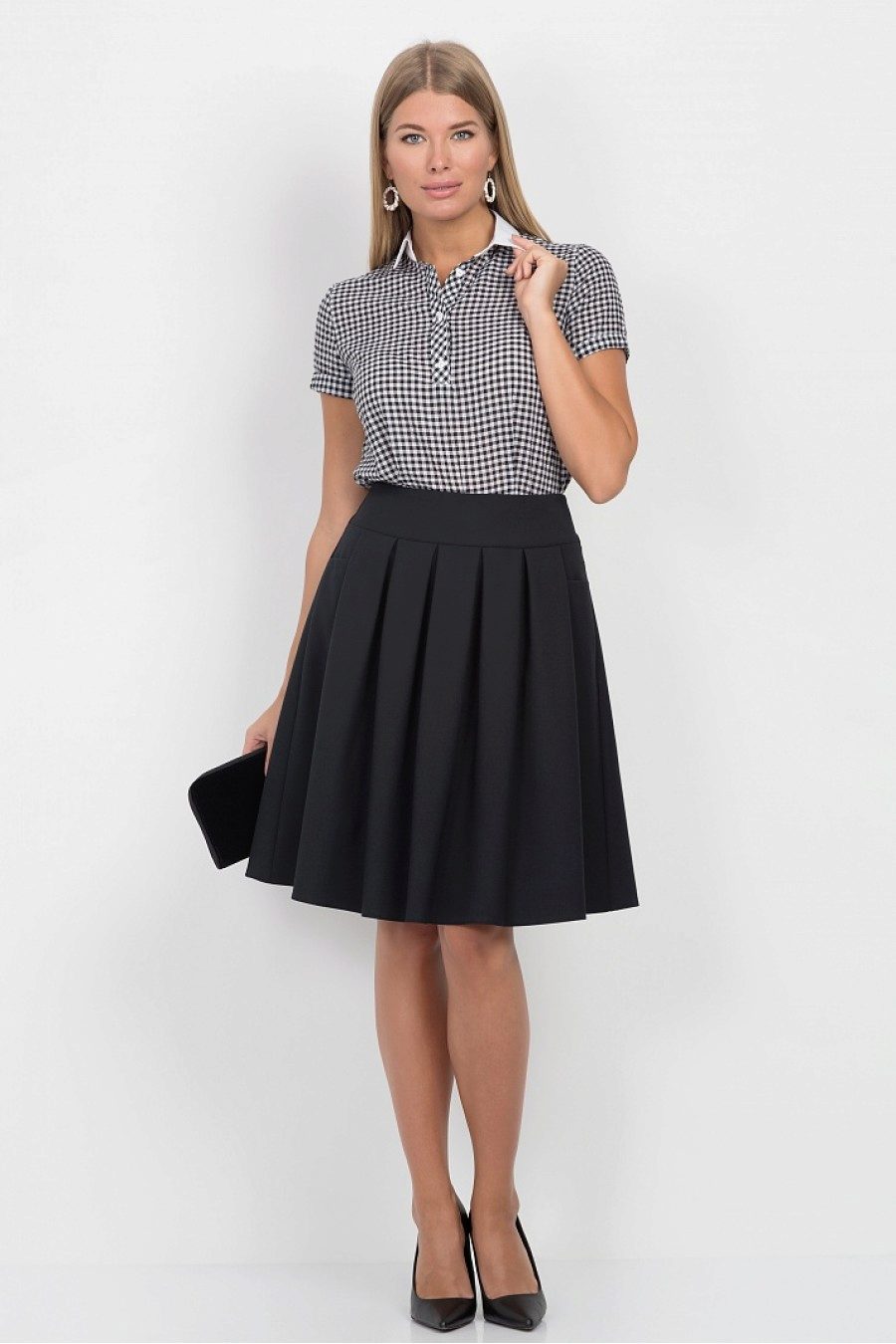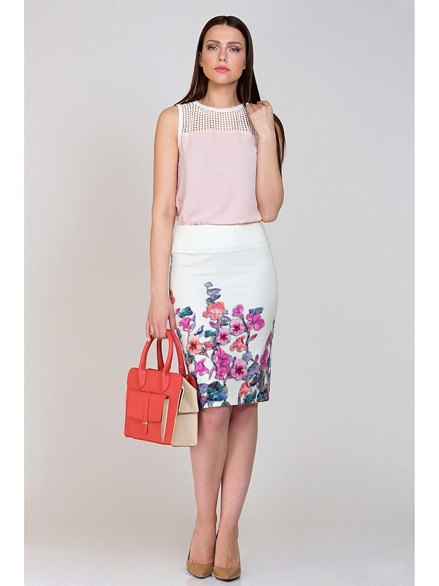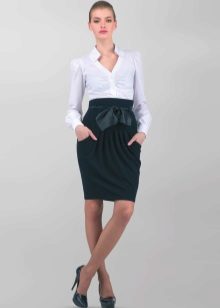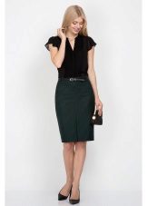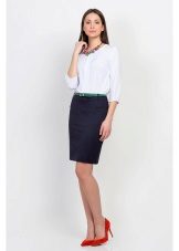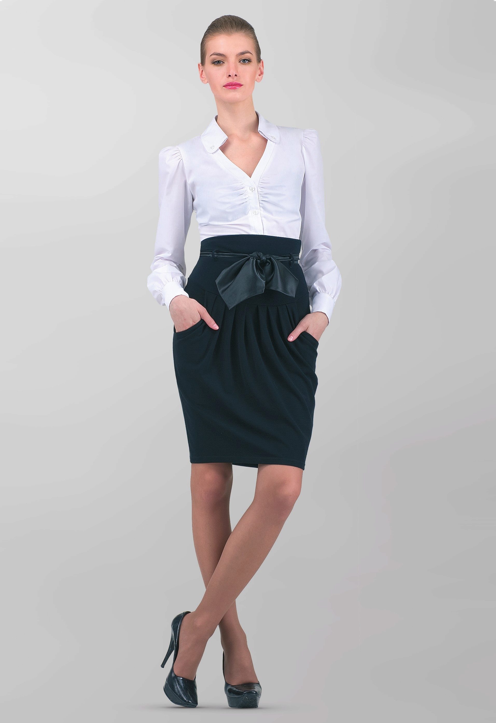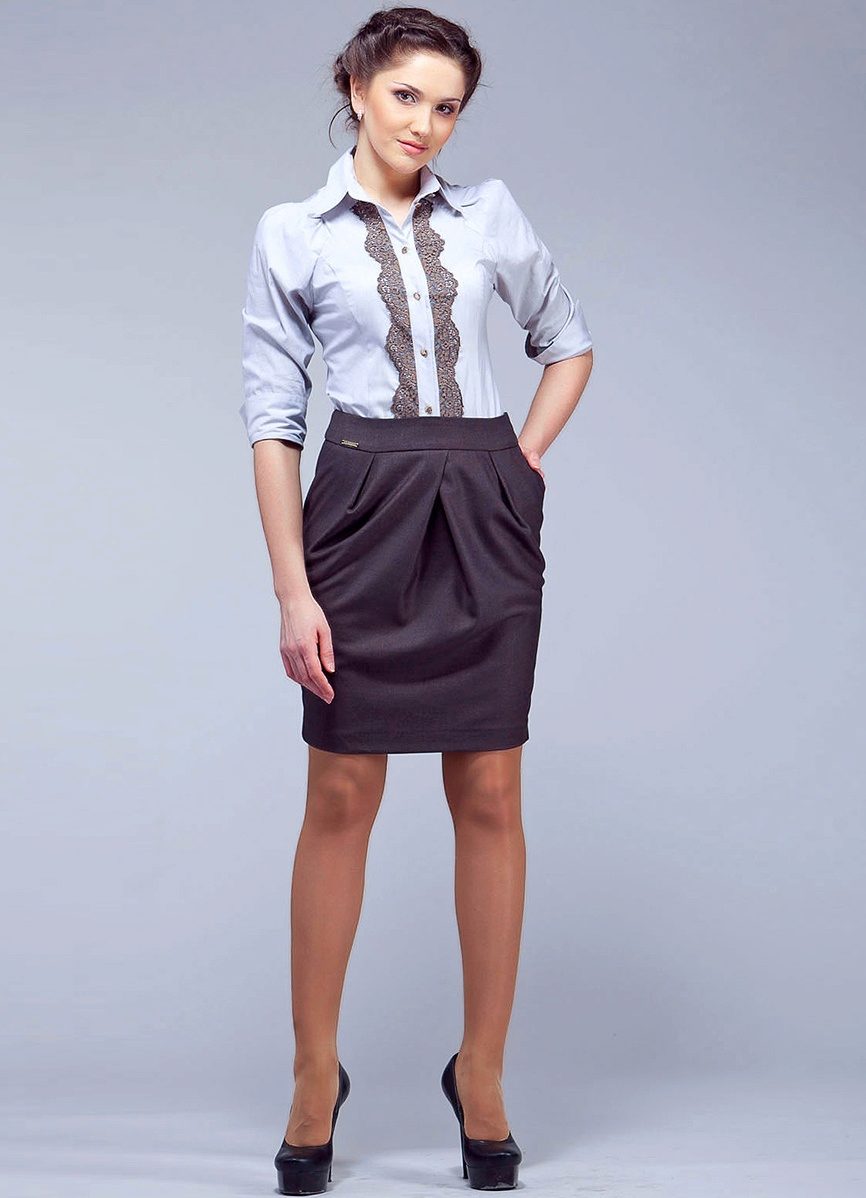 Office skirts can be worn with different blouses, shirts, tops, jackets and vests. It is very popular now to wear blouses and shirts of pastel shades.