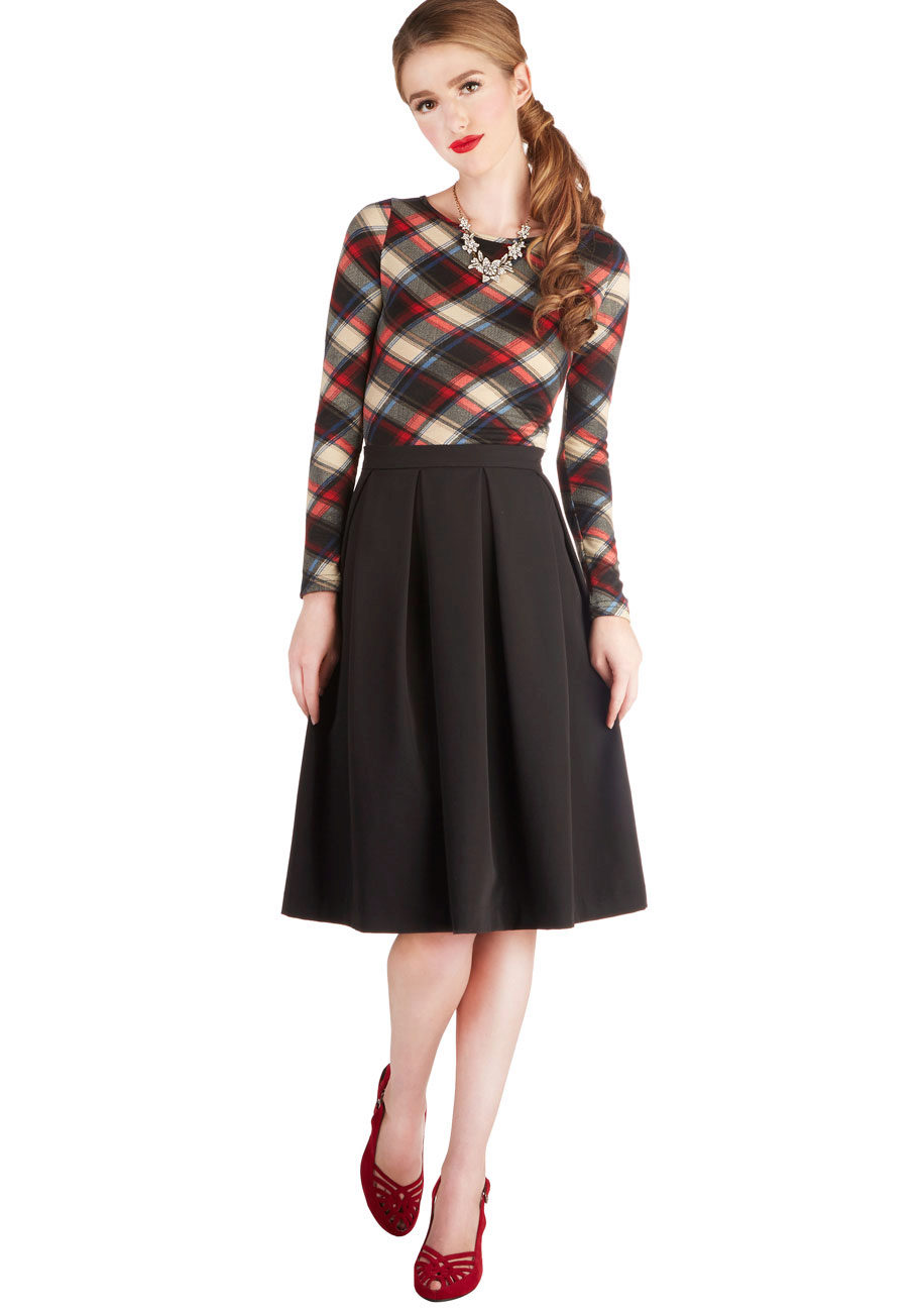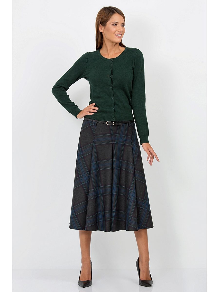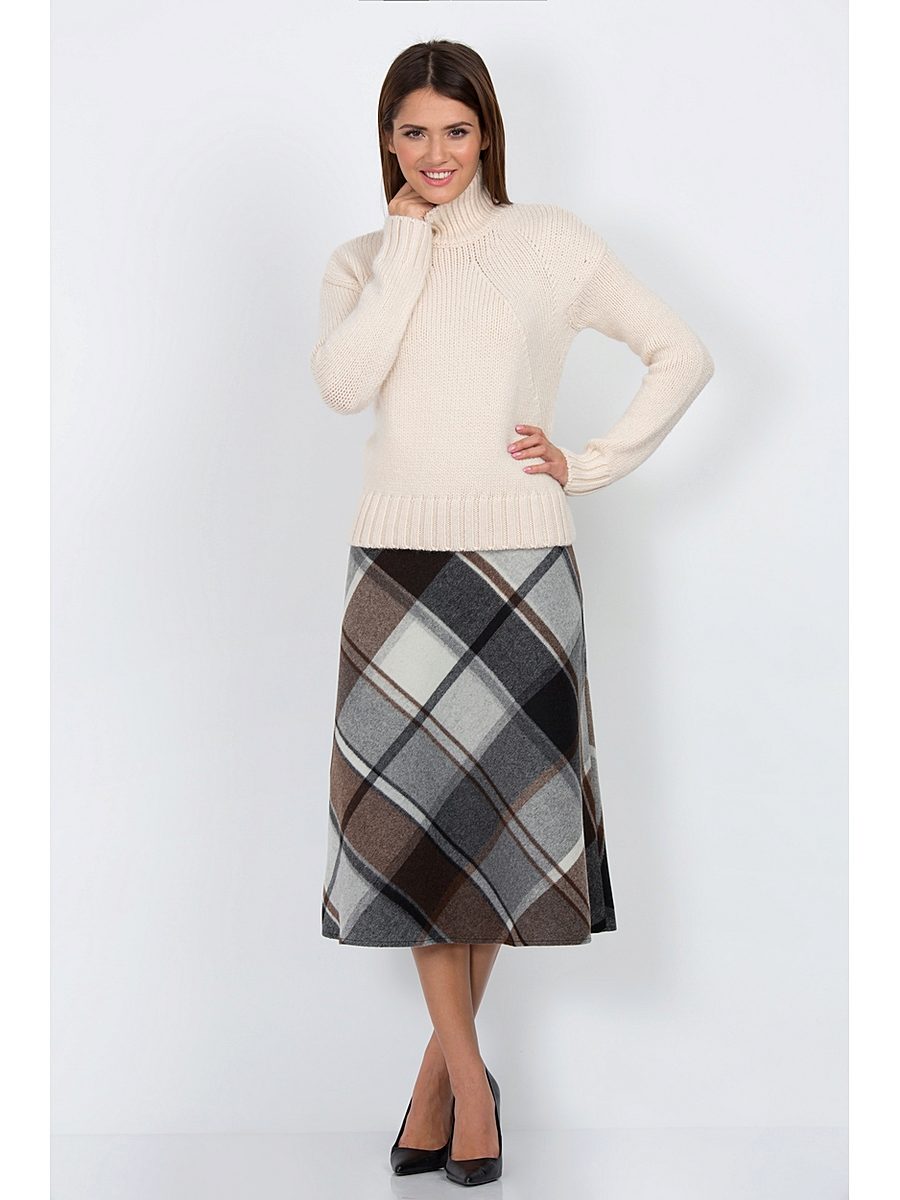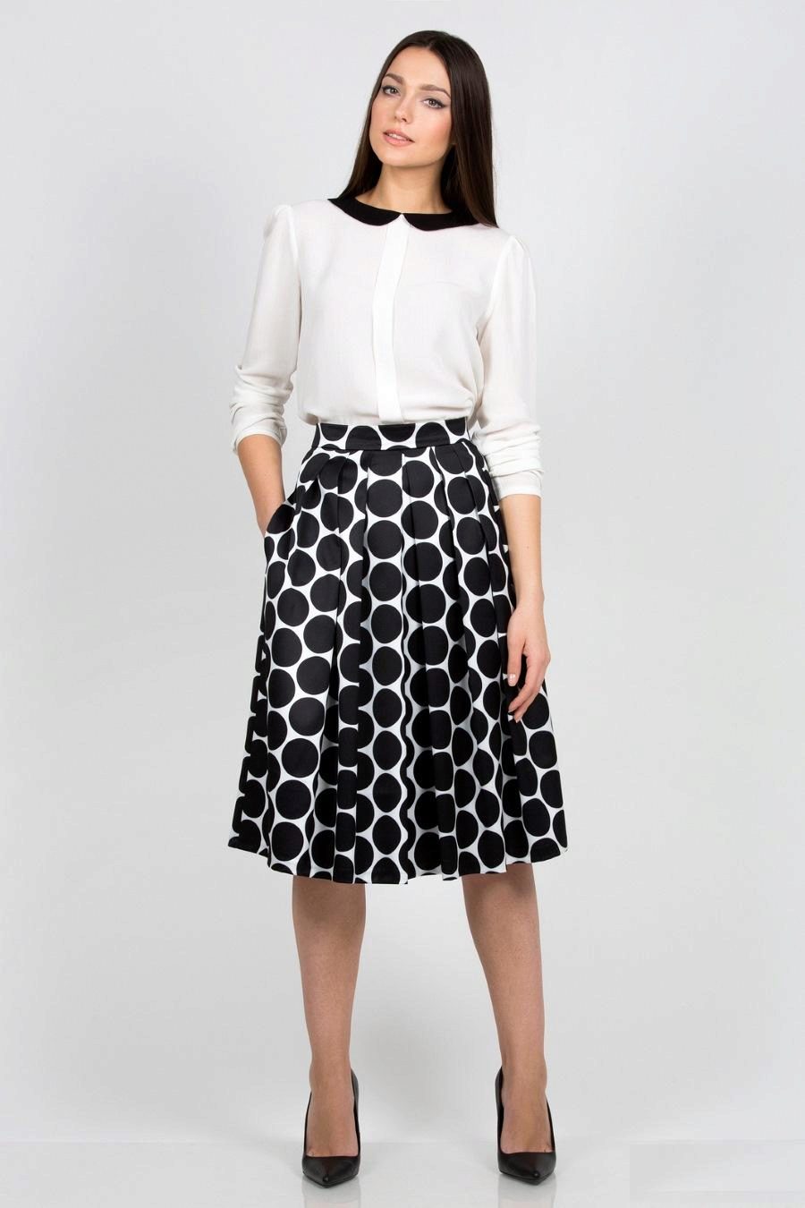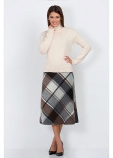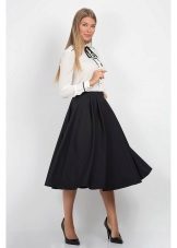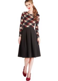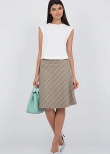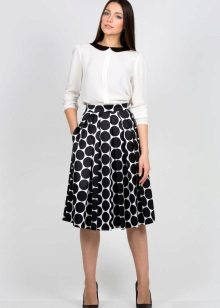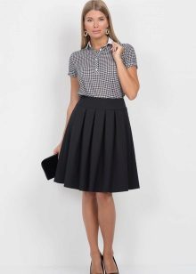 It is permissible to wear flared and puffed skirts made of thick fabrics with different geometric prints, for example, in a cage or a strip in the office.