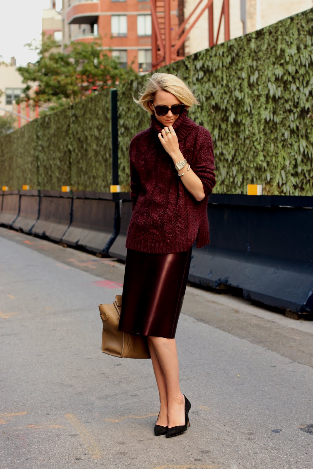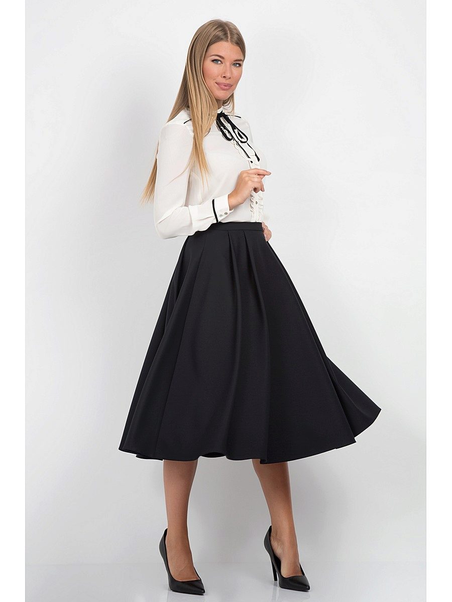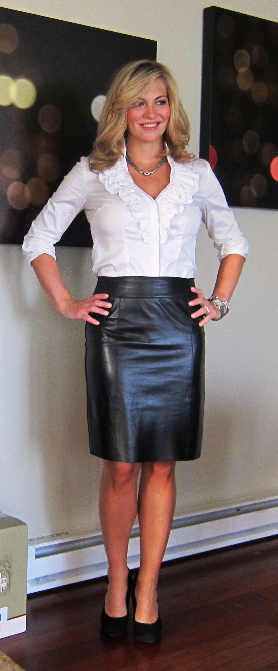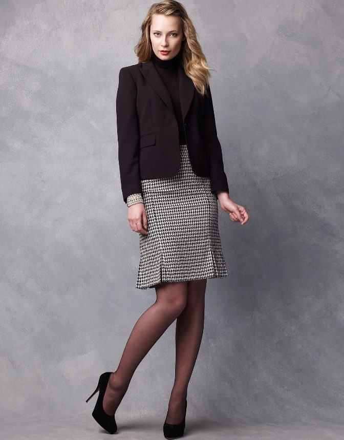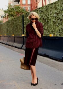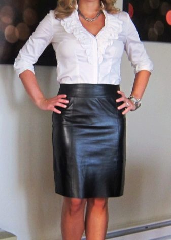 A black leather skirt will create an image of a determined, confident and stylish woman and will clearly distinguish among her colleagues.