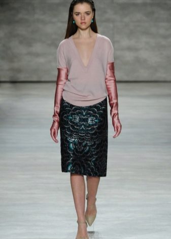 Office skirts can be sewn from the most thin and delicate fabrics, for example, from lace.