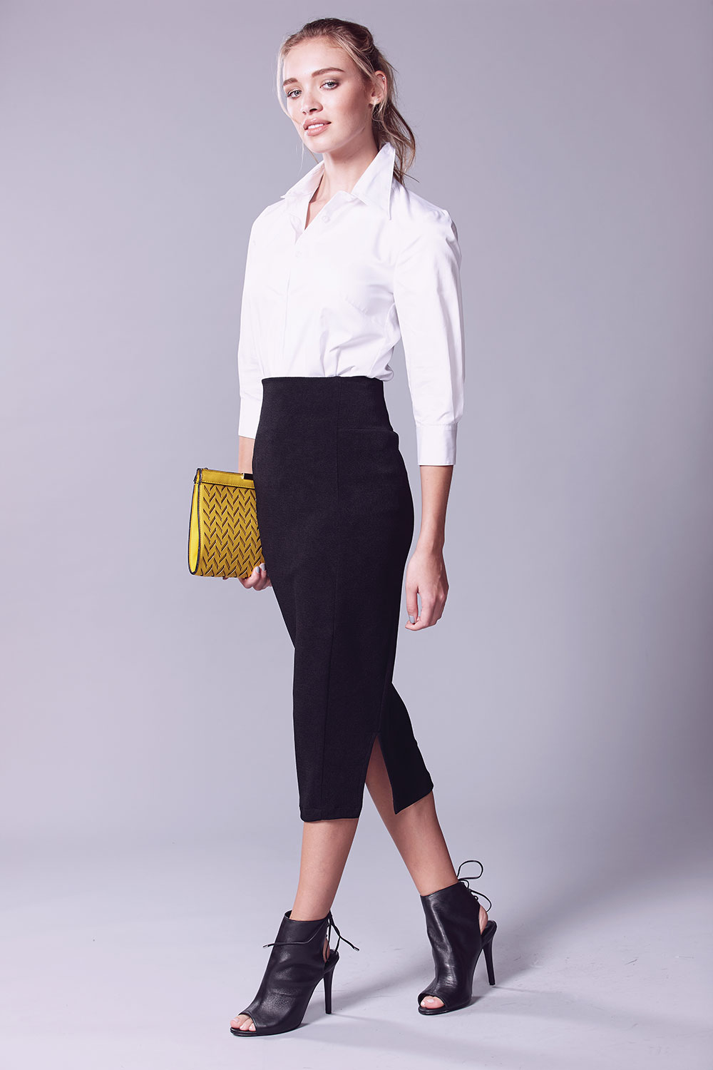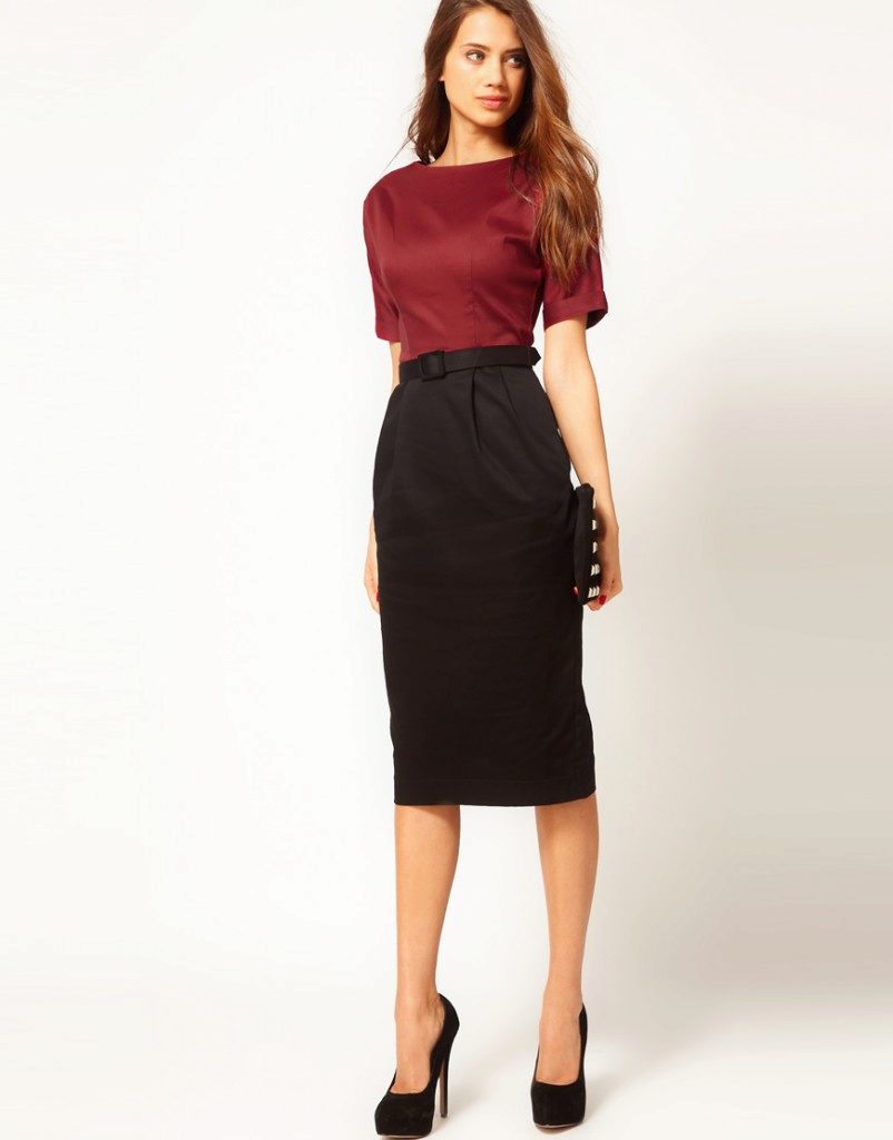 The most popular type of business skirt is still a pencil skirt. It is easy to combine it with different models of blouses, tops and jackets.