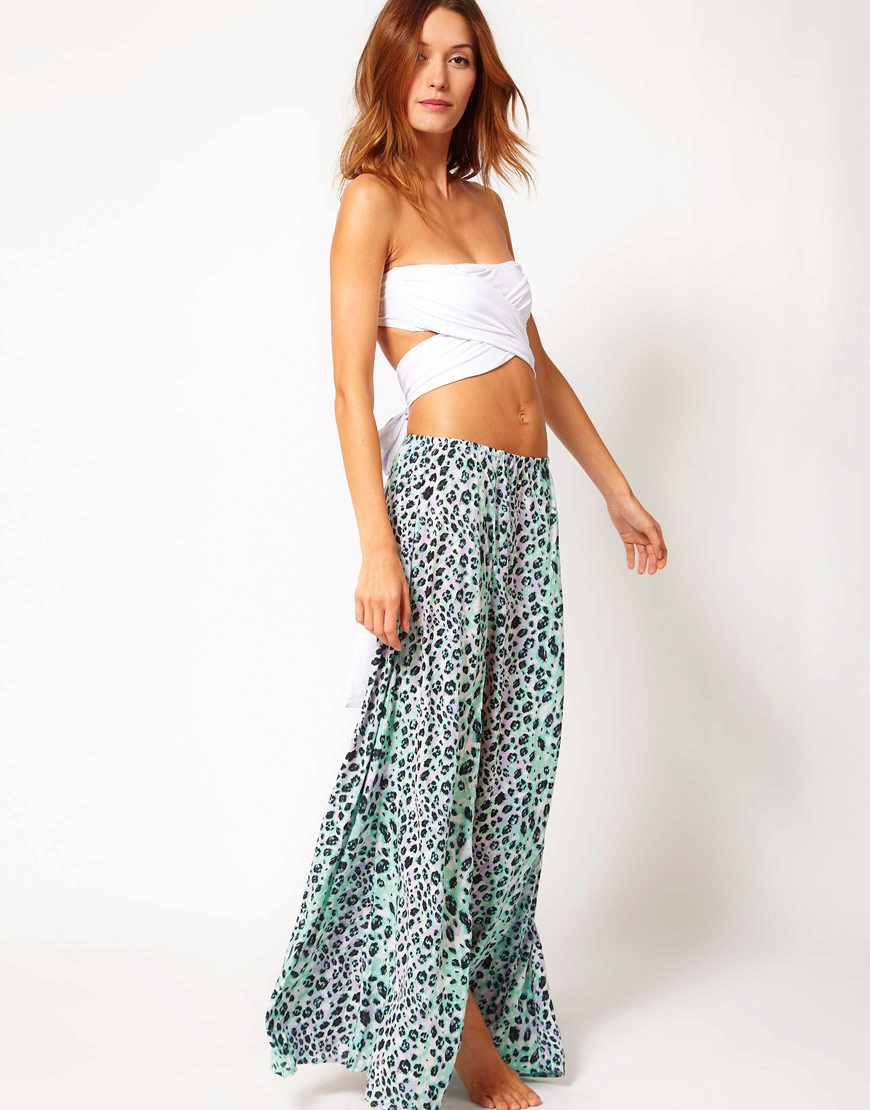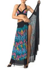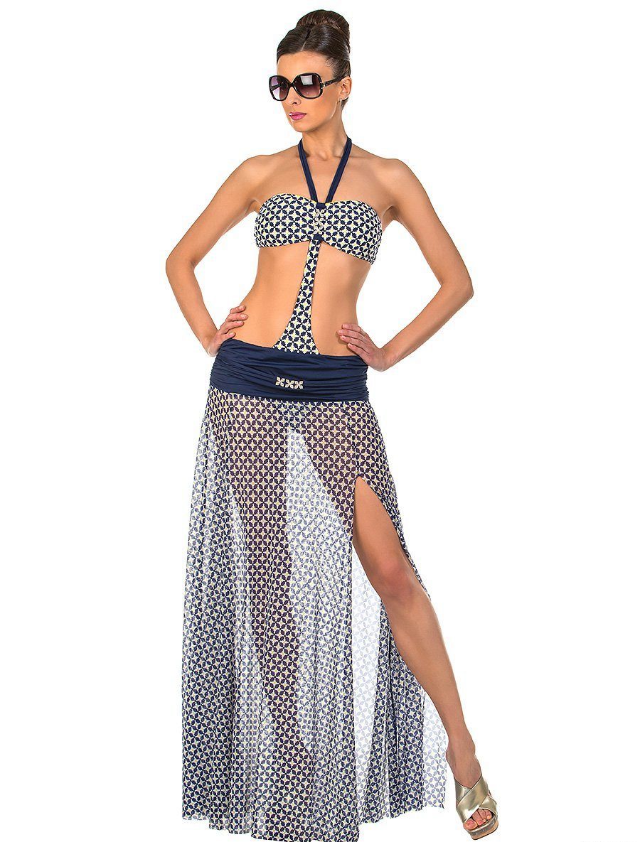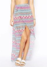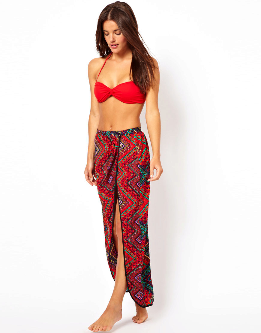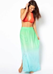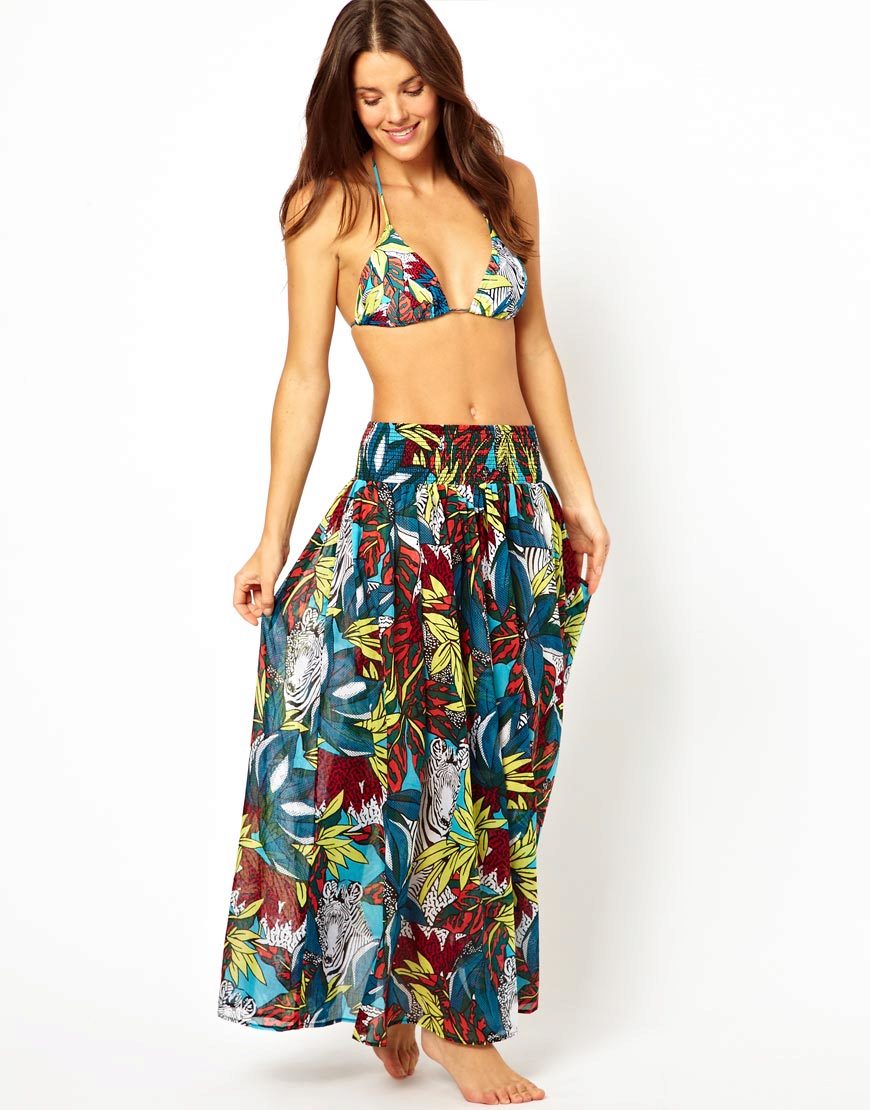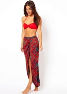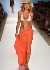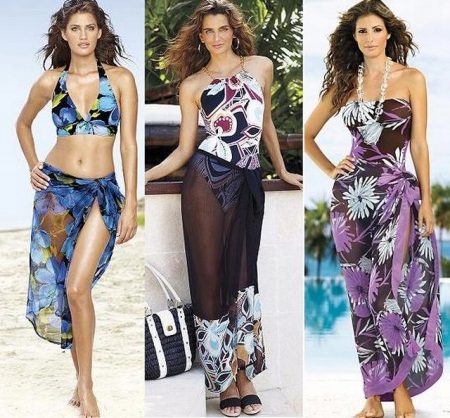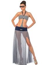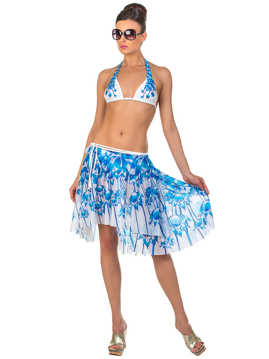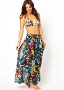 Fashion designers recommend choosing a beach skirt to match the swimsuit. Contrasting ranges are allowed. If a swimsuit with a print, then you should pick up a skirt in the same style or monophonic. If the bathing suit is of the same color, then a skirt with patterns or with decorative elements will bring a zest to your look. This season floral, ethnic prints, asymmetrical cuts, translucent, airy fabrics, low hips are very relevant. Let's try to figure it out.