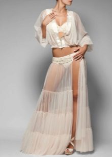 Crocheted beach skirt is the most fashionable and non-repeating model. You can easily link it yourself or order it. The low consumption of threads reduces its cost price. They are suitable for girls with slim legs and a beautiful figure. They are almost transparent, with a large and small pattern. Lace knit protects the body from the sun, makes it possible to breathe the skin. It is not hot. White models are combined with any color of your swimsuit and summer tan.