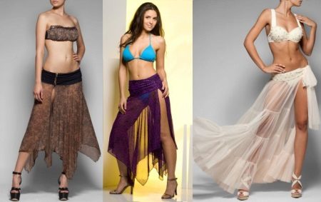 A variety of styles, colors, amazing. Beautiful and practical, it can be worn with a tunic, and with a short topic, and with a bra from your swimsuit. Small skirts made of lightweight materials are placed in a beach bag, it is always at hand, which is in competition with sundresses and summer dresses.