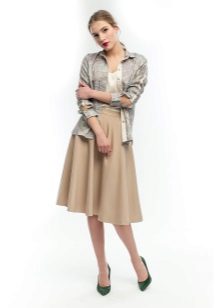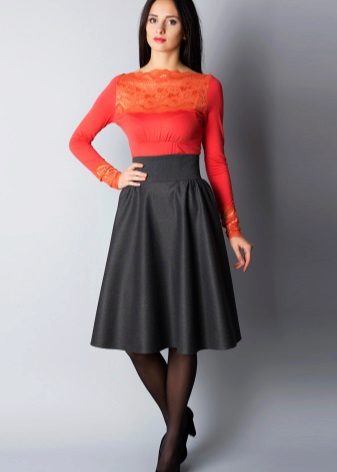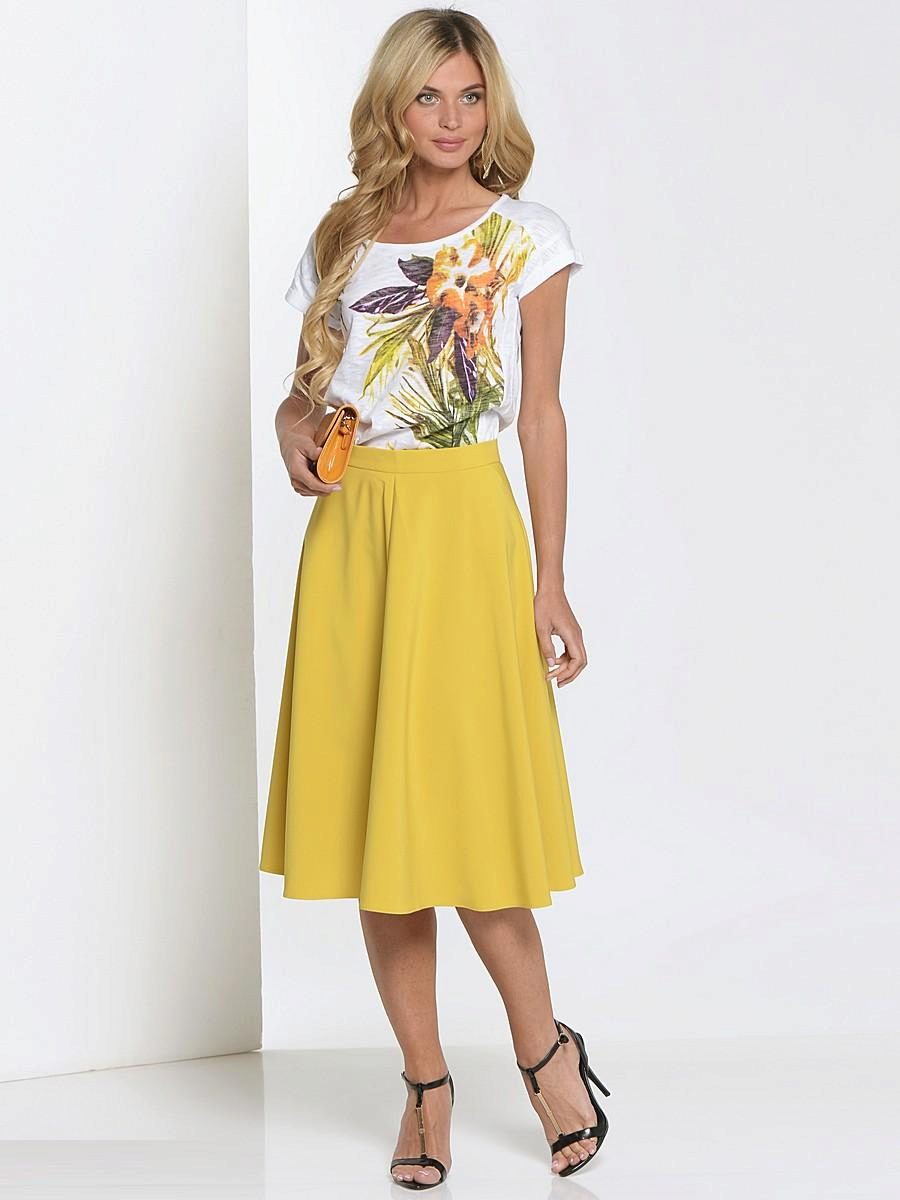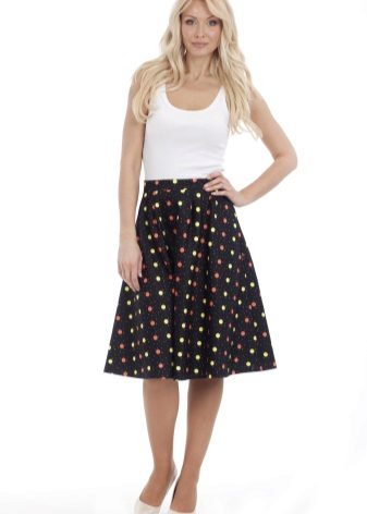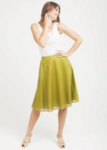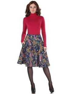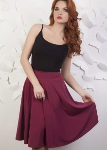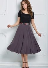 The stylish semi-sun skirt harmoniously looks with different top. Attention should be paid to the structure of the fabric, its colors and length. A big role in choosing the top is where you want to go.