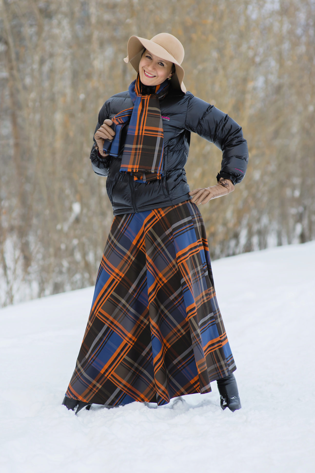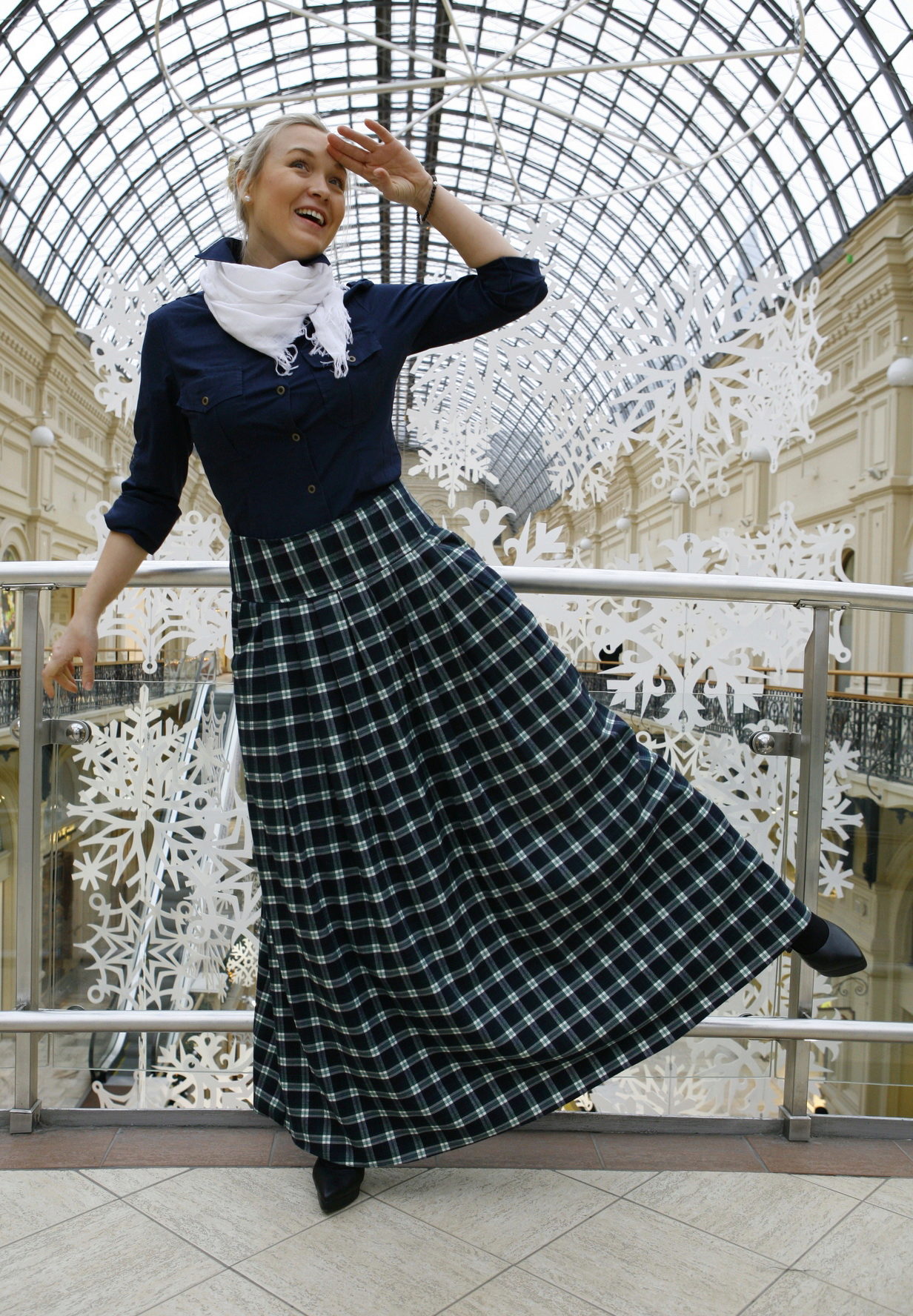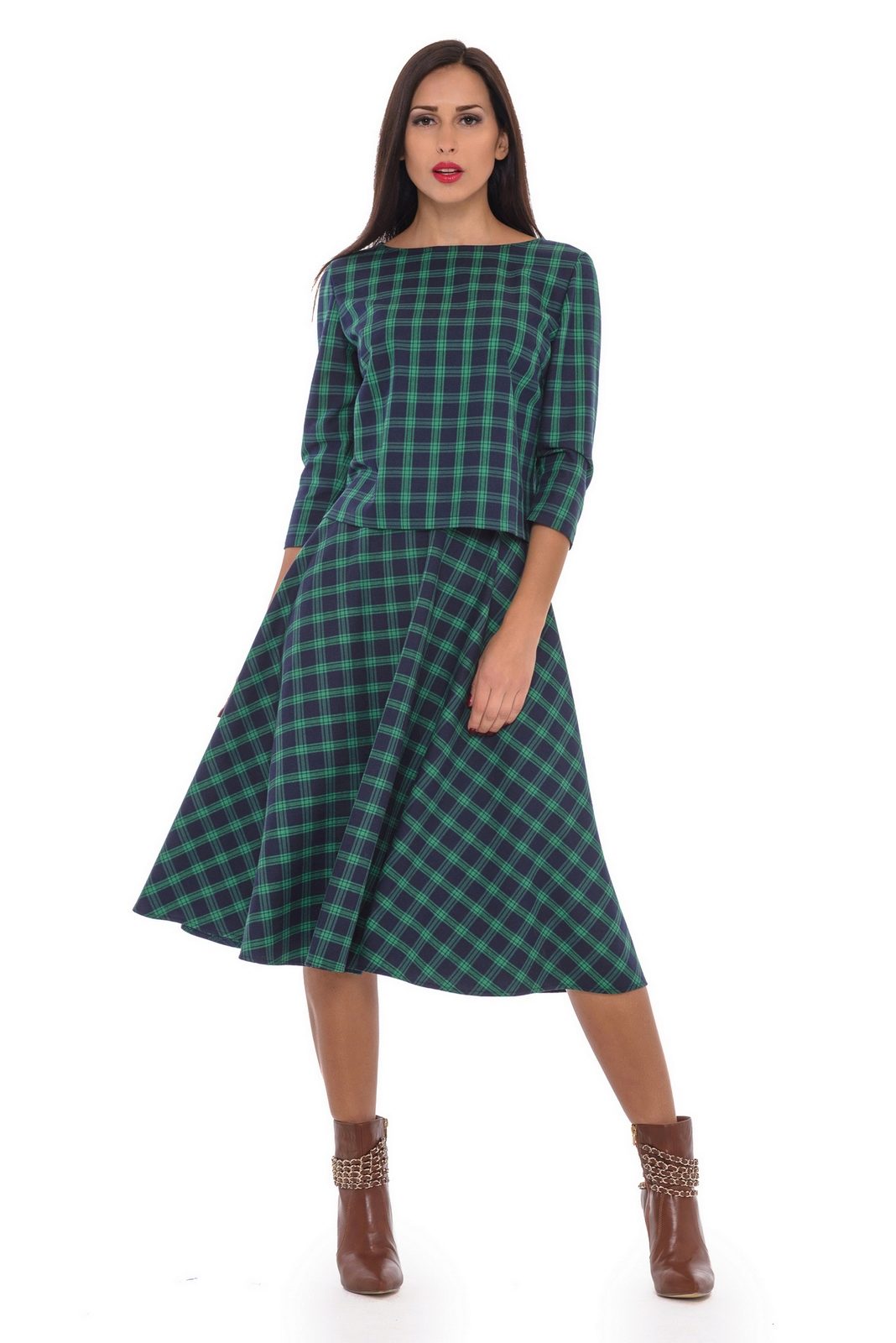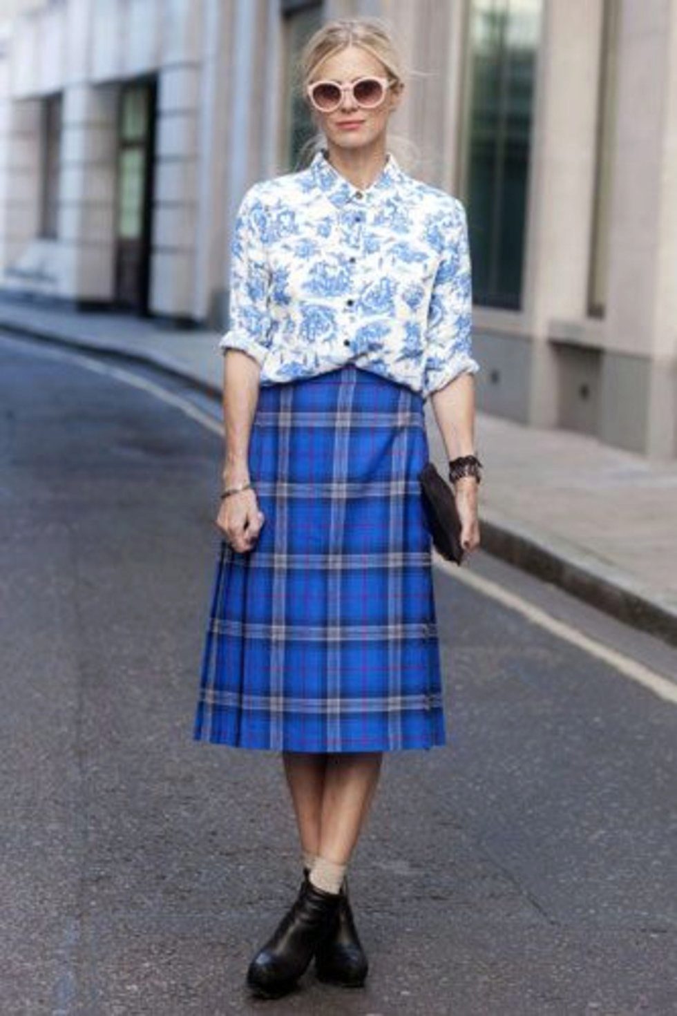 Often girls prefer a skirt in a cage. This coloring will be perfectly combined with blouses made of translucent fabrics, knitted blouses. This tandem is suitable for slender girls who have the perfect figure. A small handbag and retro-inspired glasses will help add style to the image. Fat women should combine a plaid skirt with classic fitted shirts. Low-heeled or wedge shoes will successfully complete the silhouette.