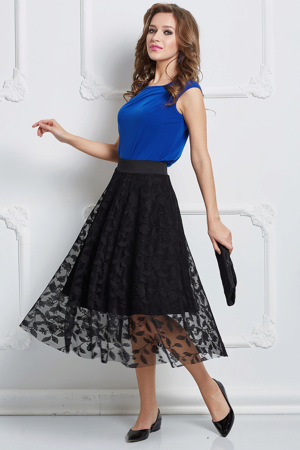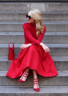 For the skirt length maxi, you must select shoes with heels, preference should be given to classic models. Your silhouette will look visually slimmer. When choosing accessories, you can stay on massive jewelry: a ring with a large stone, necklaces to the belt or long earrings. Handbag clutch on a thin chain add luxury and sophistication.