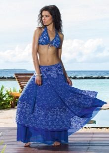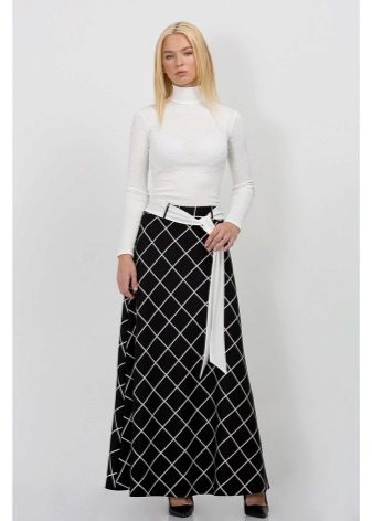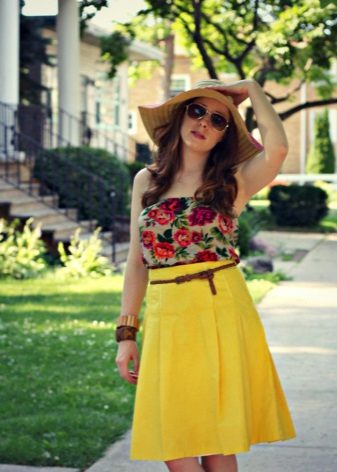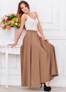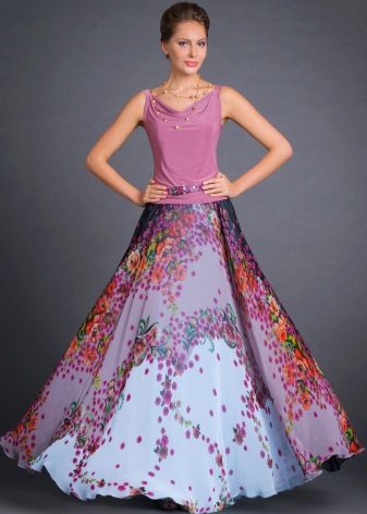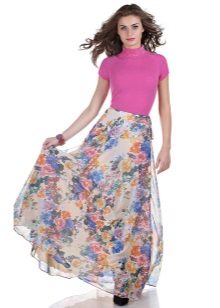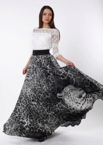 The skirt to the floor looks beautiful with a top white. To create a thin waistline, you need to pick up a thin strap. The half-sun skirt with a klesh looks originally, because it has much in common with the gypsy. Any type of figure in such a skirt will look advantageous.