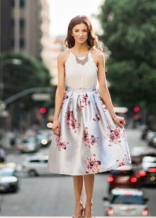 White skirt looks great with red, silver or gold color. To create a romantic image, you can use the top and accessories decorated with floral print.