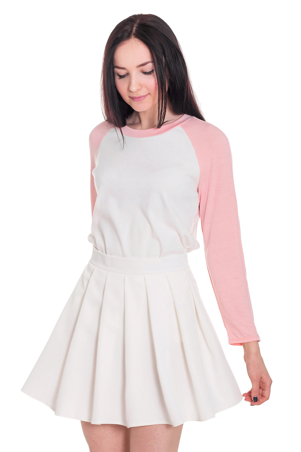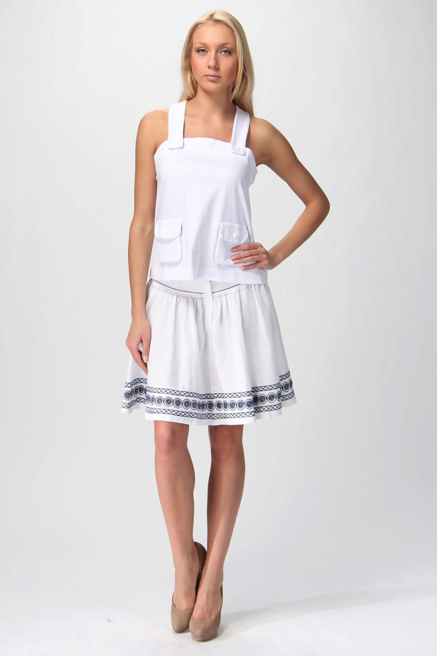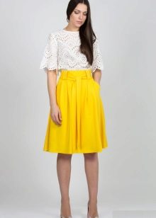 The skirt sun white color looks very elegant. It is ideal for skinny girls, because it allows you to add volume to your hips.