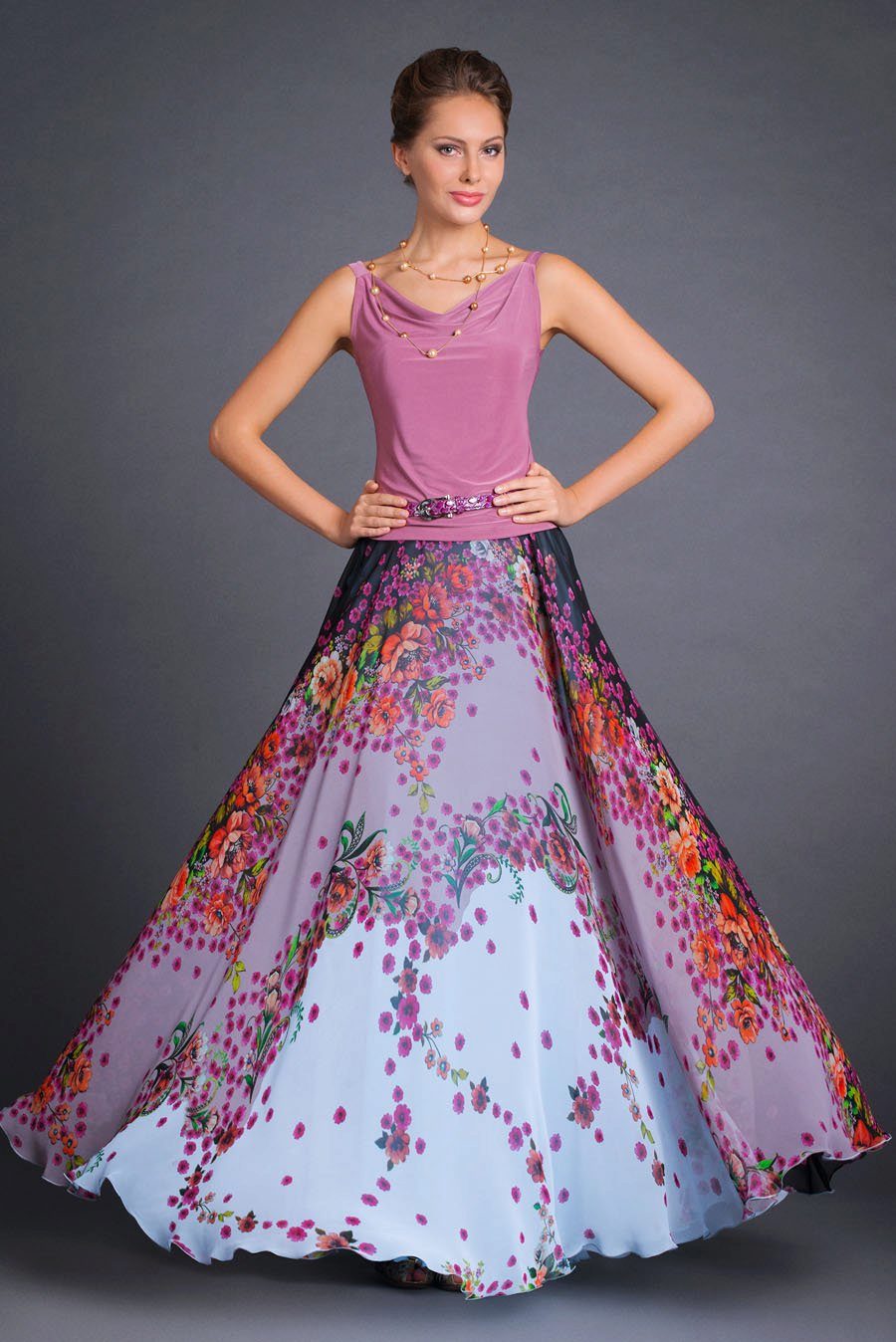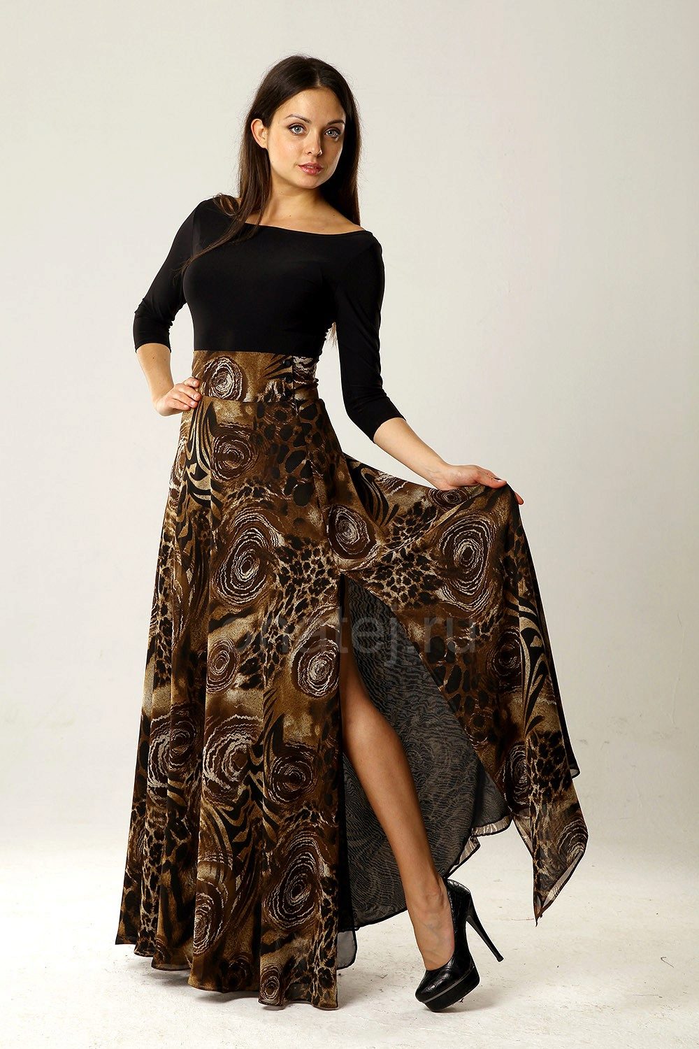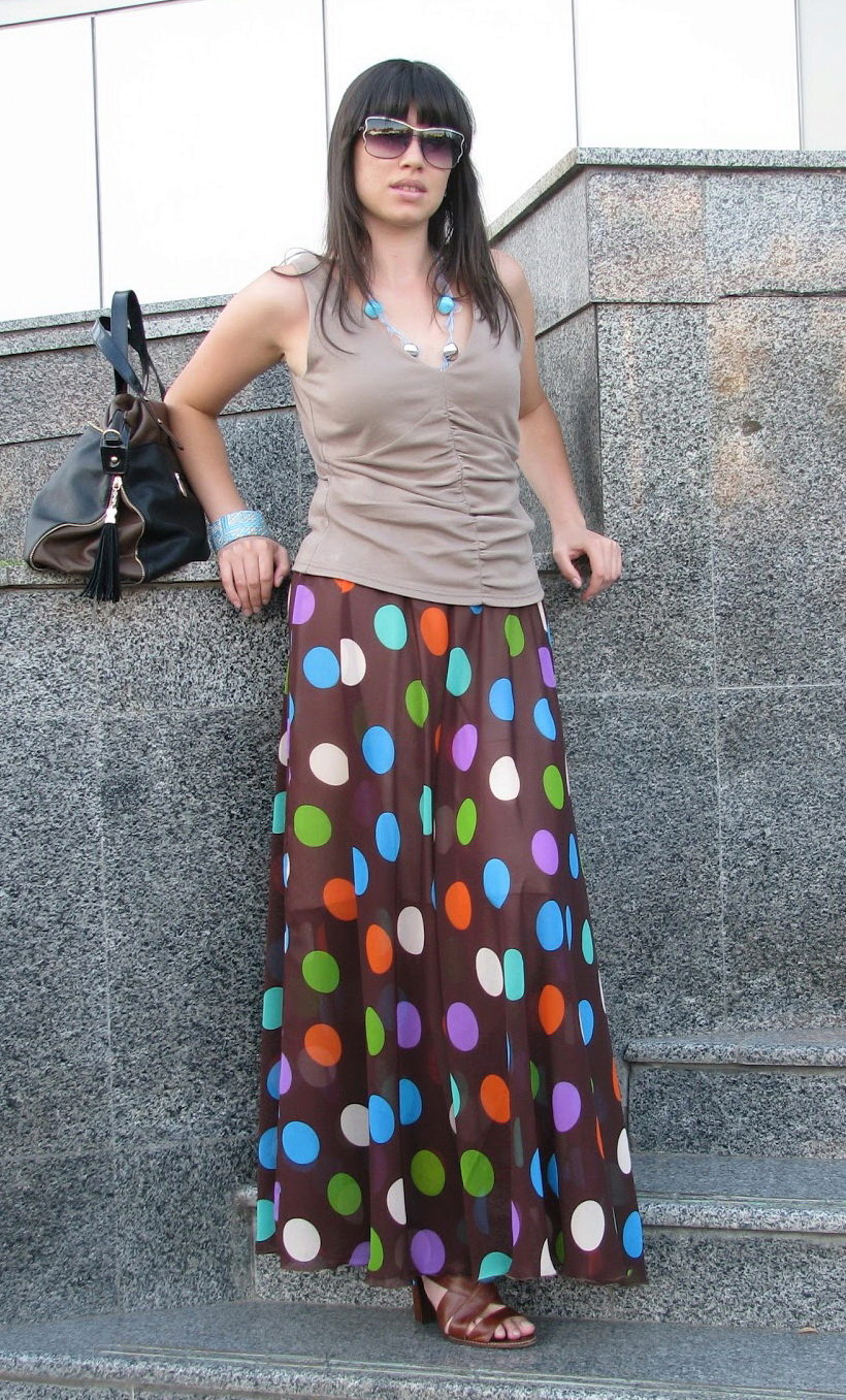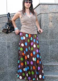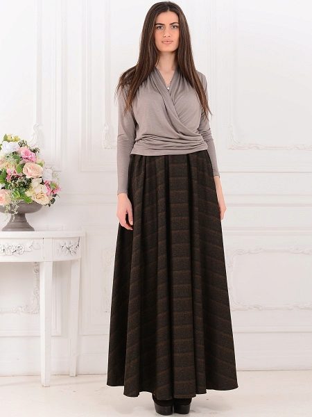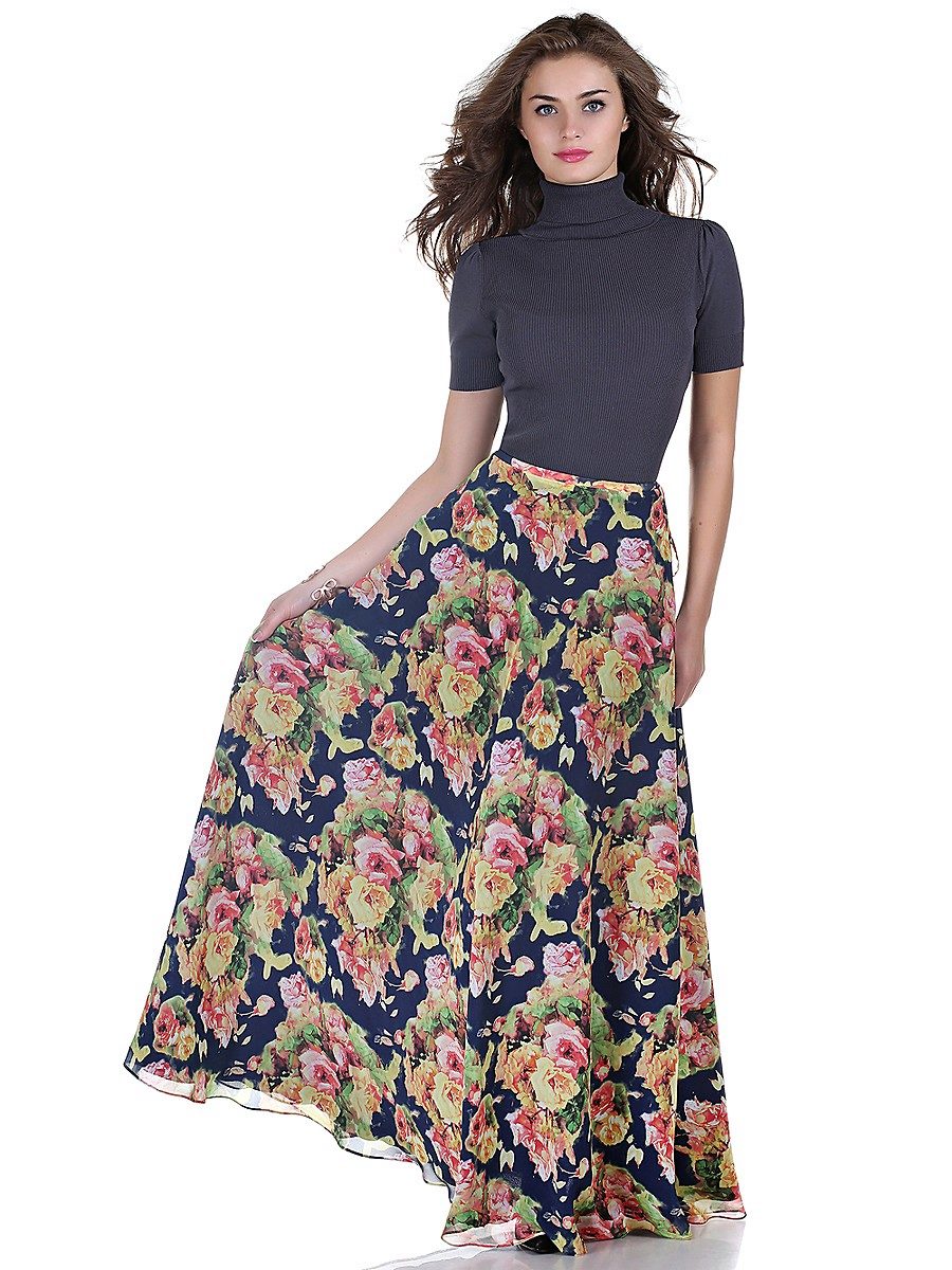 Skirts in the floor perfectly combined with tops, T-shirts or T-shirts.On a cool evening, you can throw on another blouse, jacket or jacket.