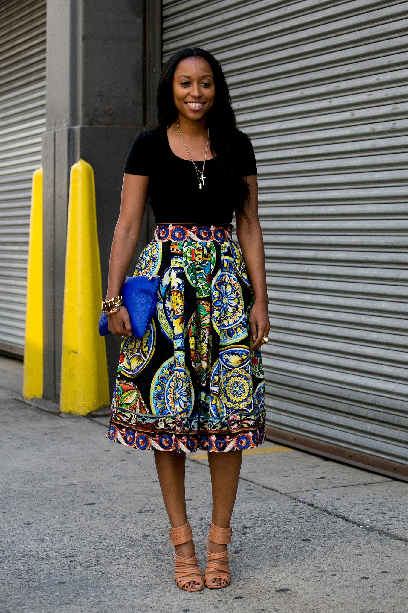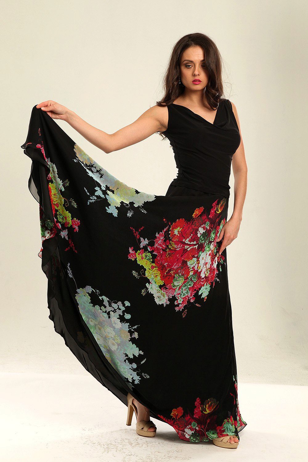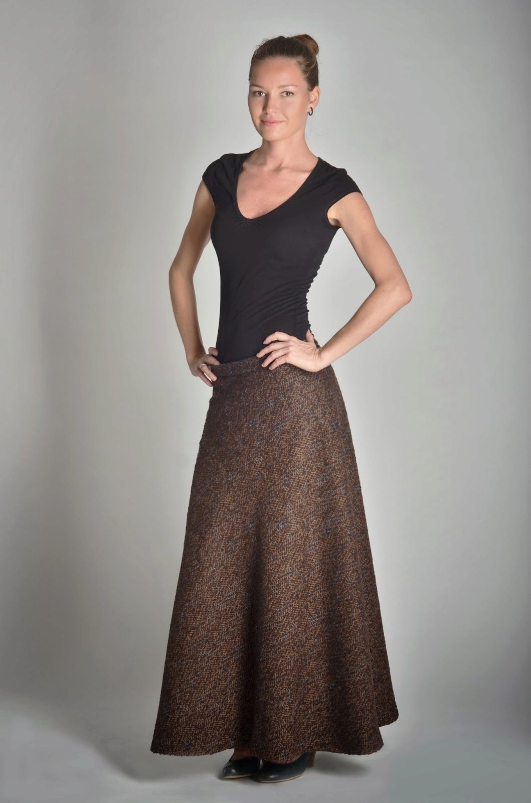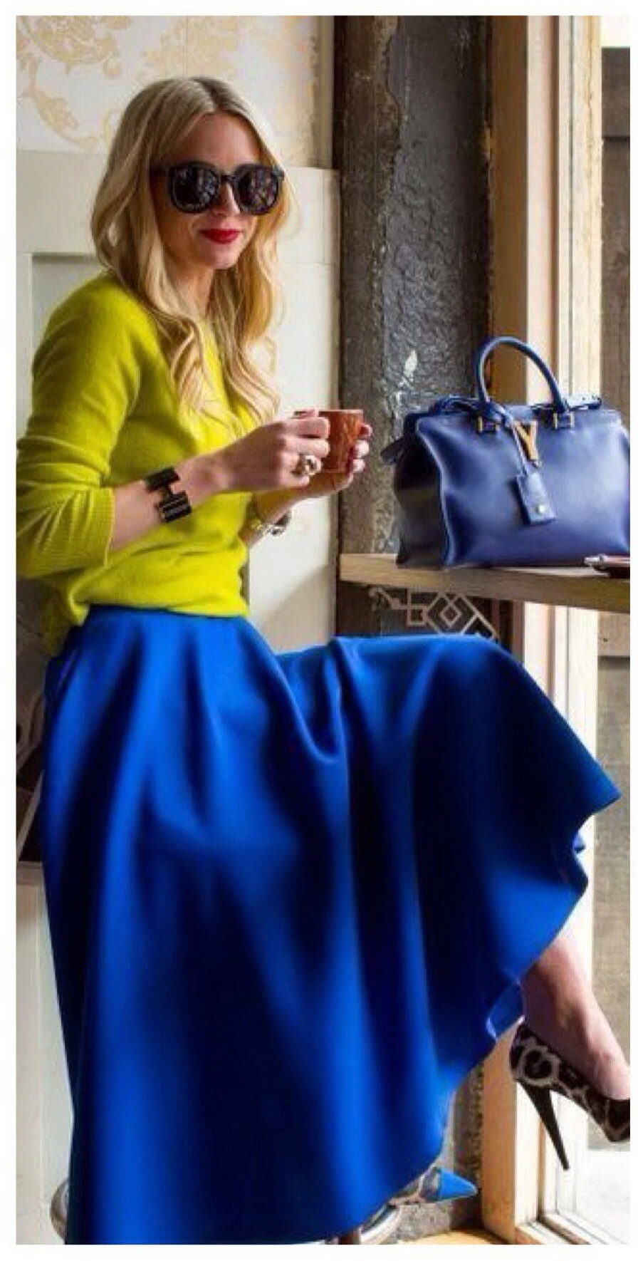 Skirts in the floor perfectly combined with tops, T-shirts or T-shirts.On a cool evening, you can throw on another blouse, jacket or jacket.