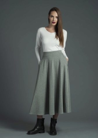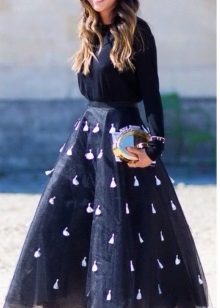 The half-sun skirt to the floor is the most common, because every girl will look beautiful and feminine in her. It is necessary to choose not only the style of the length of the skirt, but also take into account the shoes and top.