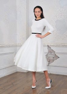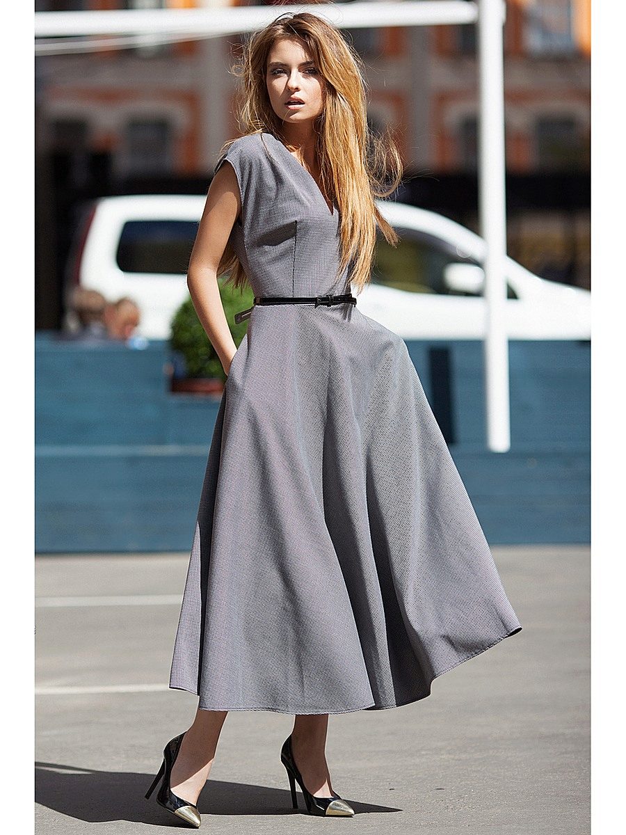 This model attracts the attention of others to the waist line. This option will look great on a slim girl. This style can be easily combined with light shoes or sandals.