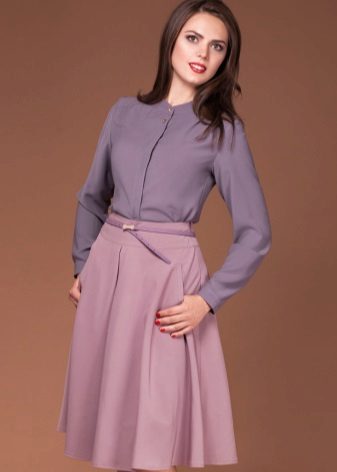 A great choice is a classic blouse or a fitted jacket. This option is suitable and full of girls, but you need to shift the emphasis from the waist line to the length of the skirt.