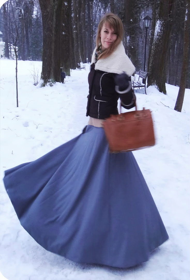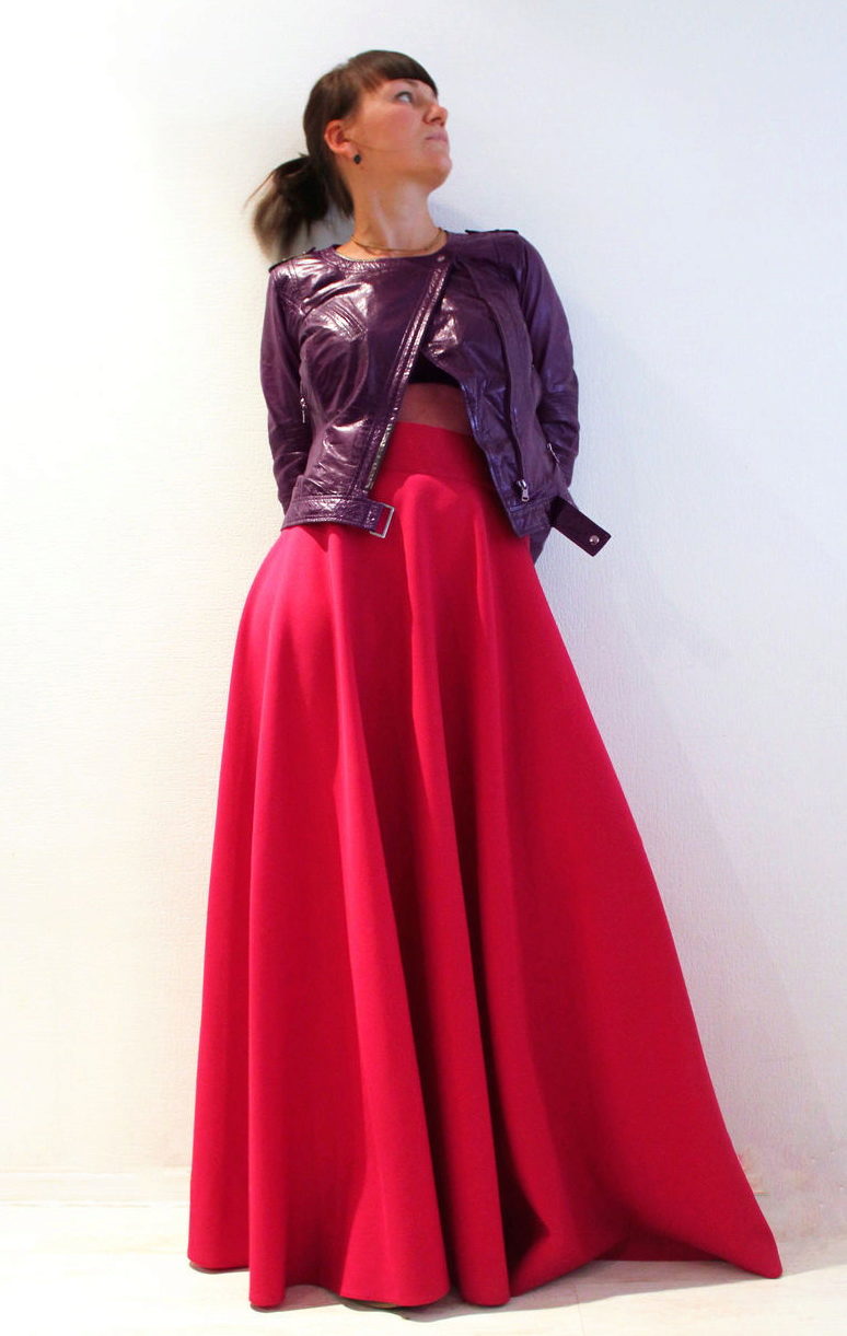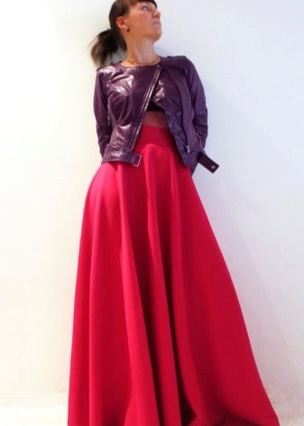 If you prefer long skirts, then for this style you should choose a contrasting top. Thus, it is possible to place accents in the image. A fitted shortened jacket is perfect for a cool evening.