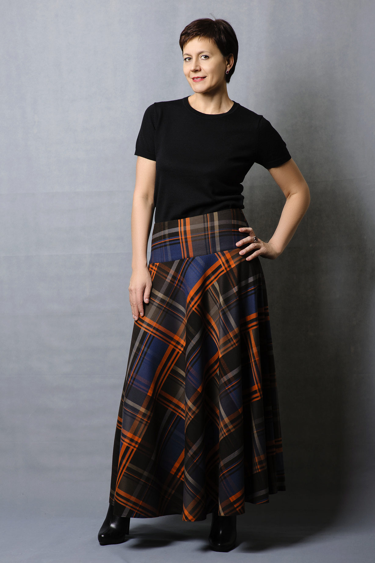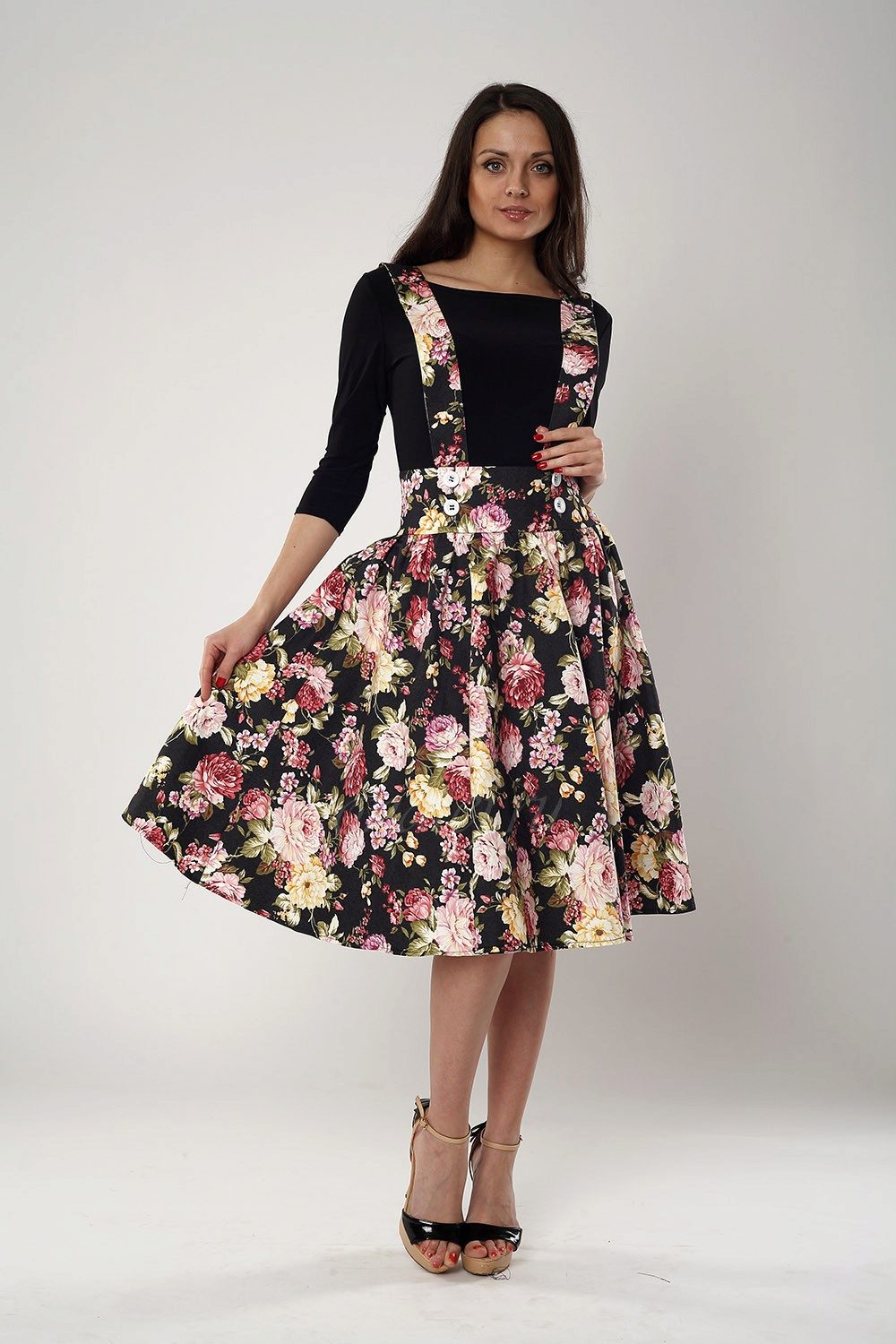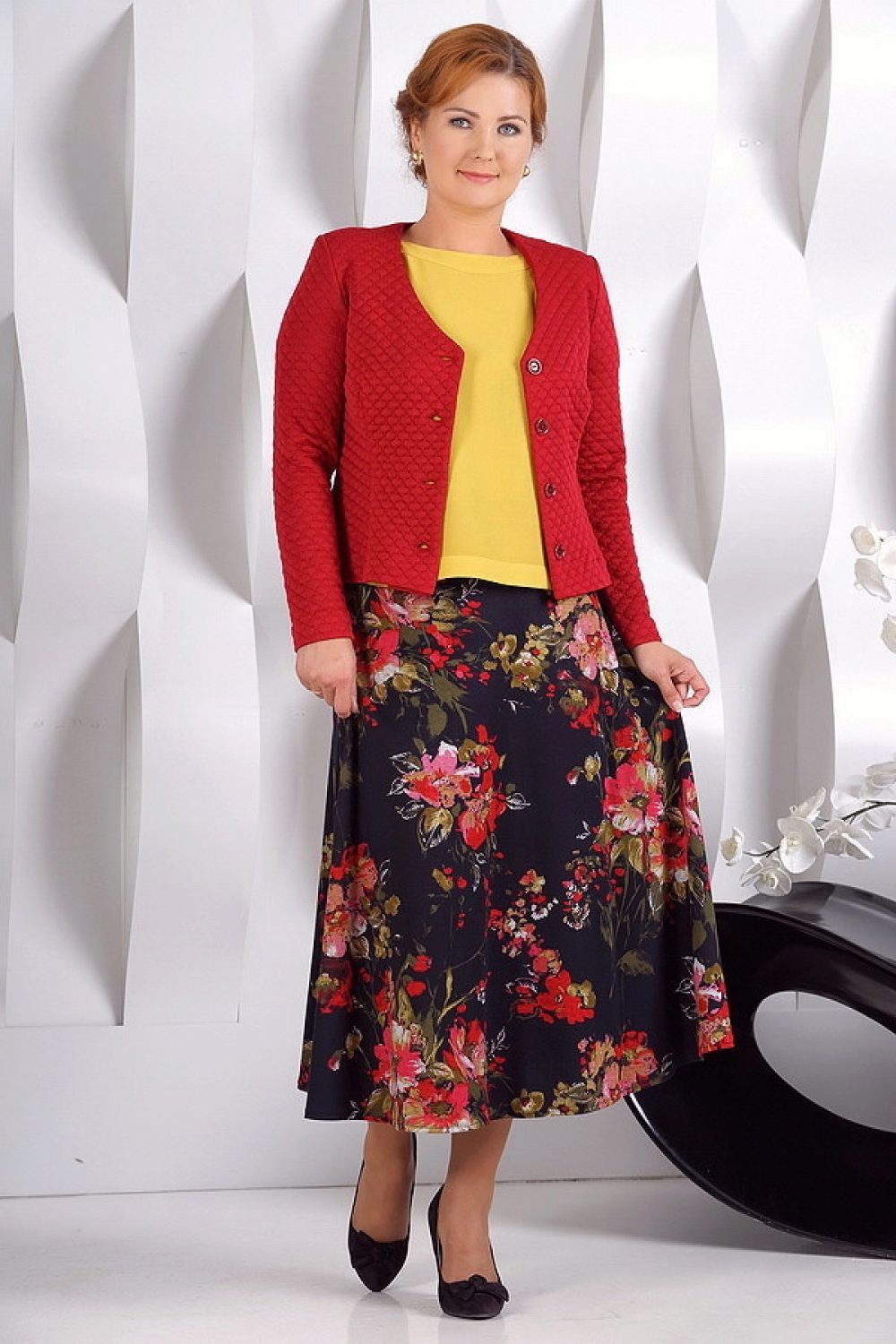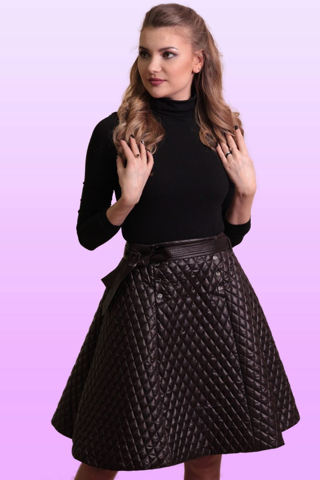 The semi-sun skirt has a free cut, so all women of any height, age or body type can wear it. This style looks beautiful on girls with a silhouette resembling an hourglass.