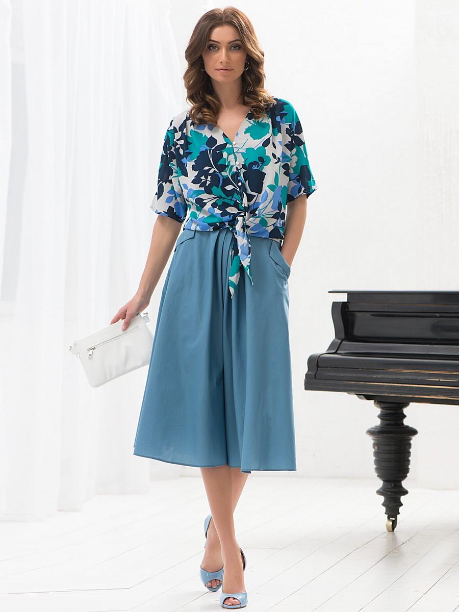 Flowing fabric helps to create harmony between the top and the bottom. This style allows you to emphasize the waistline, even for those girls who do not have it.