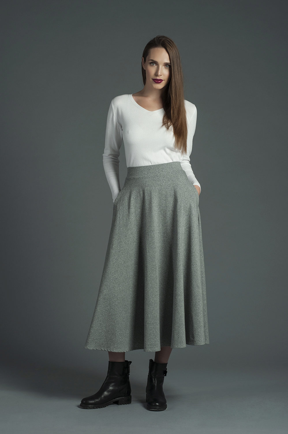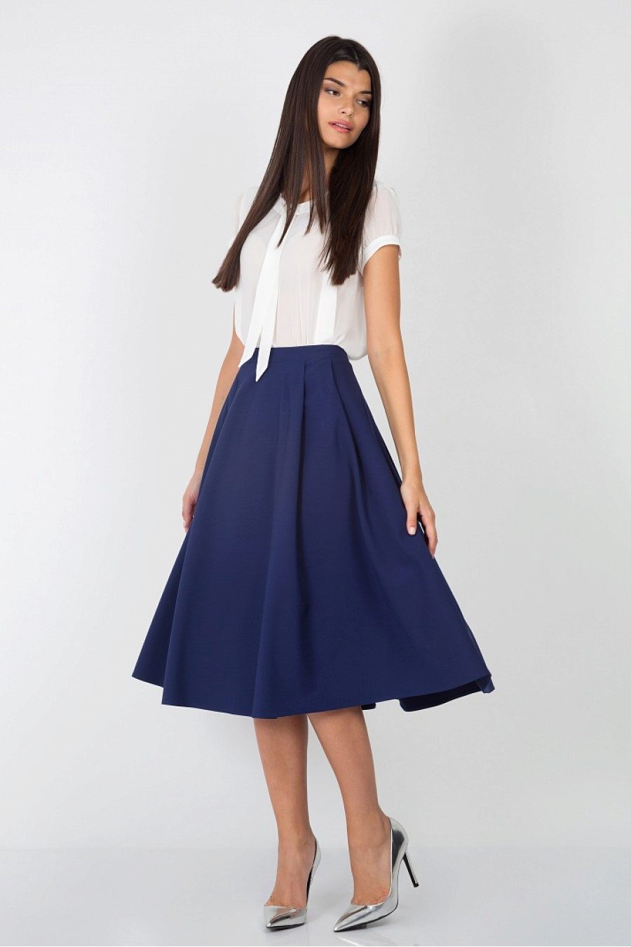 If you like a feminine and romantic style, then the semi-sun skirt must be present in your wardrobe. This style has a simple cut and is a kind of flared skirt. Clearly marked waist and small waves give the models charm and tenderness.