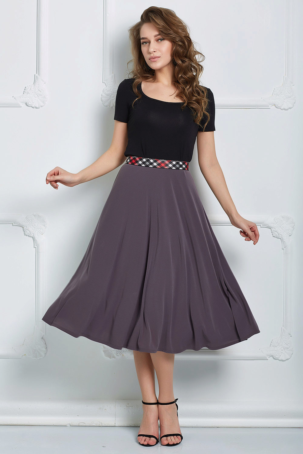 Semi-skirt models with elastic are a great option for everyday life. It is suitable for any type of shape. This model is a good choice for full girls, because it allows you to hide full hips and extra inches at the waist.