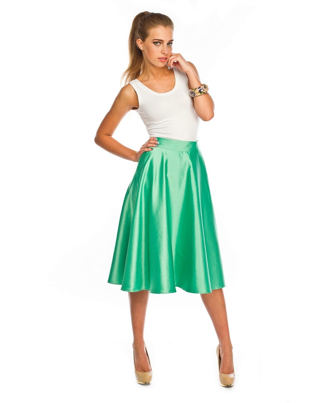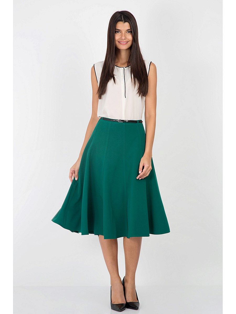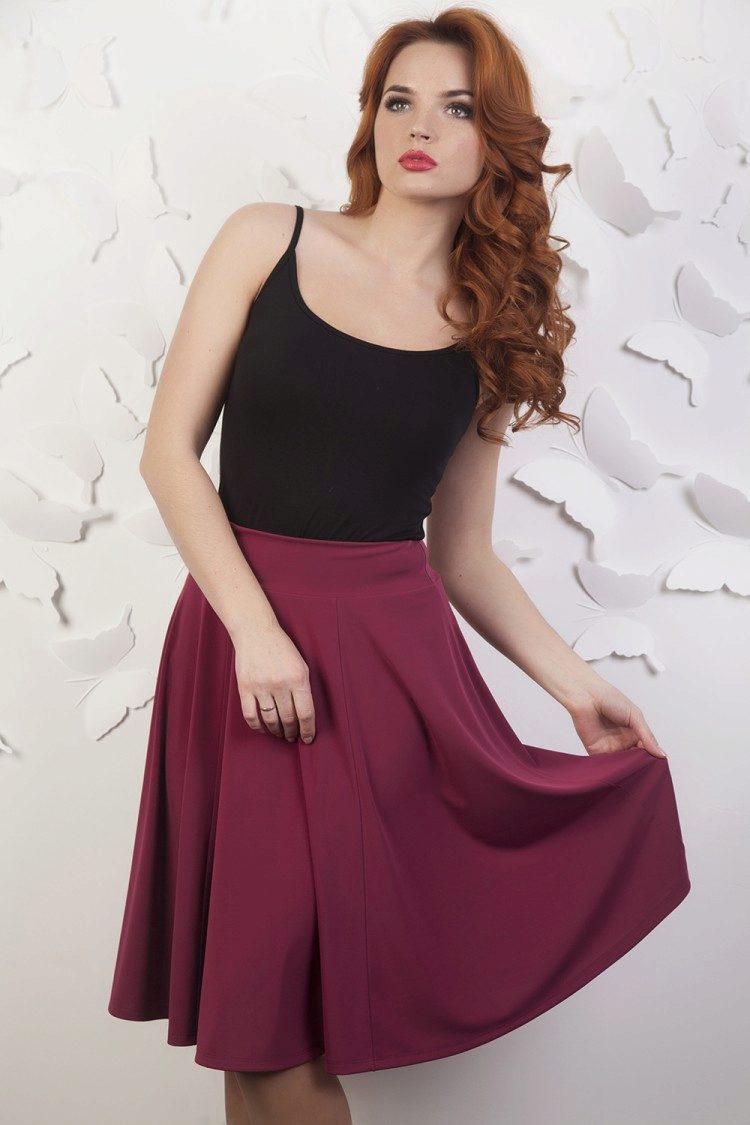 Owners of the figure of an inverted triangle can add the volume of the hip with the help of flared skirt and thus correct the figure. And for slender figures such as a slender column or a rectangle, the half-sun skirt is also perfectly suited, because it looks very beautiful on an elegant camp.