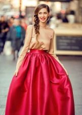 Fluffy skirt, sewn of satin, is an attractive elegant option. In this skirt, you can go on a date or a reception. The most in demand are satin knee-length models. They are complemented by a top with an open neckline and high heels.