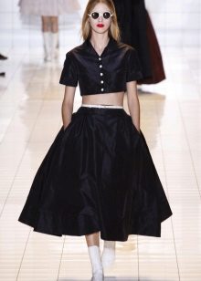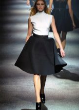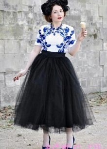 With such a fluffy skirt, they create both a classic and business look and an outfit attire. Such skirts look good with contrasting and low-key riding. White and gray top, as well as cream, milky and other pastel colors are well suited to the black volumetric skirt. Also, this skirt can be combined with a black top.