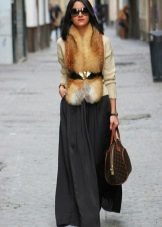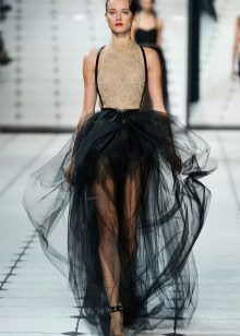 When selecting outerwear for fluffy skirts, it is important only to complement the look of the skirt, but not to contradict its pomp, and not to hide the skirt. The best option would be a short top, leaving a skirt on display, as well as clothing that follows the style of the skirt. This may be a short leather jacket or a shortened version of a fur vest.