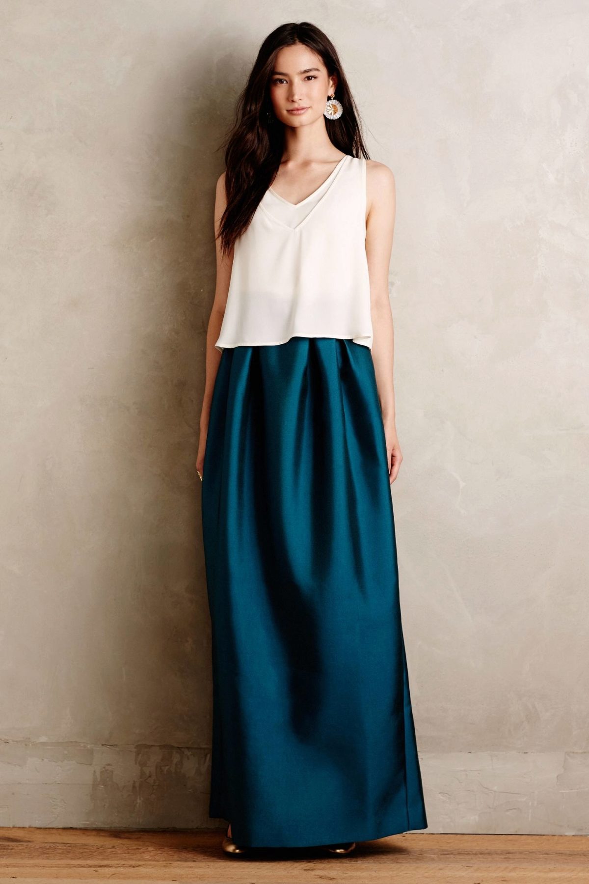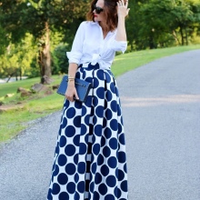 Volumetric maxi skirt is often chosen for a feminine and romantic bow.